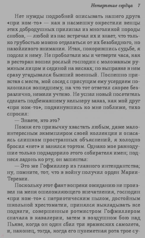 --Стефан Цвейг: Нетерпение сердцаРусская классическая и современная литератураДетектив. Остросюжетная литератураЗарубежная художественная литератураРусская художественная литератураФэнтезиДраматургияПоэзияПриключенияФантастикаЭпос и фольклорКлассическая прозаАфоризмыИсторическая прозаДетективыБасниСентиментальная прозаОтечественный боевикСовременная прозаМолодежная литератураЗарубежная классическая и современная литература