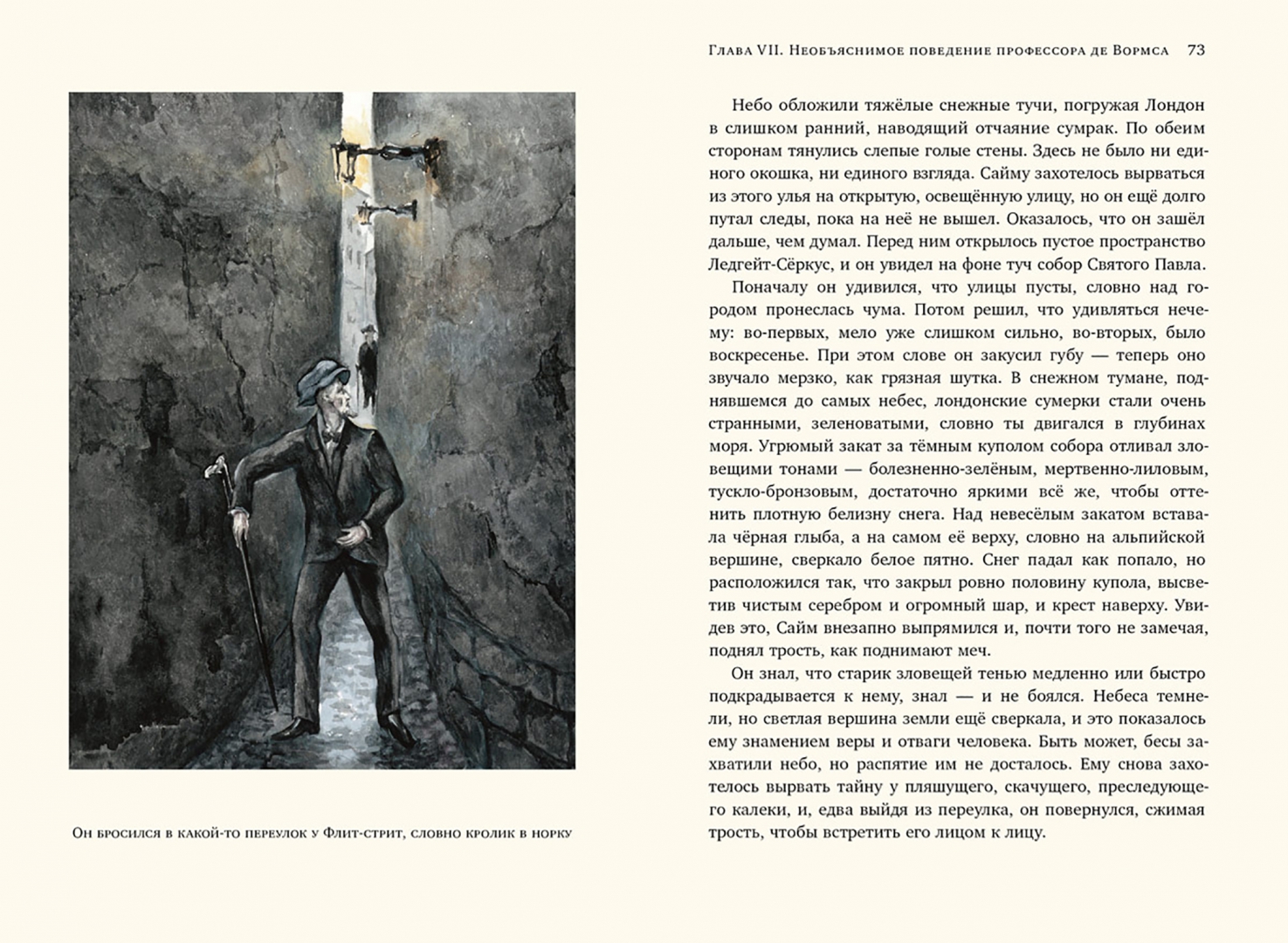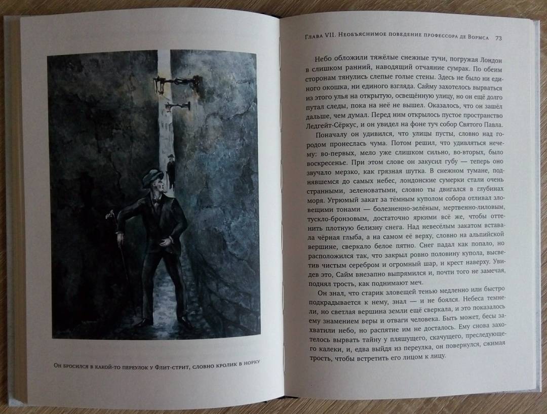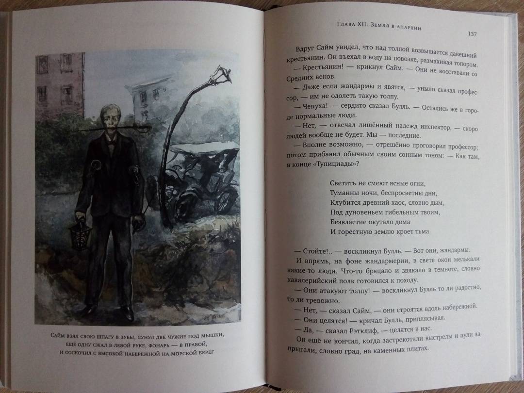 ОписаниеНа окраине Лондона раскинулся Шафранный парк. Здесь часто можно услышать поэта и анархиста Грегори Люциана. Но однажды речи Грегори прерывает загадочный господин Гэбриел Сайм. Он сомневается в анархизме Грегори, чем вызывает его ярость. Желая доказать истинность своей веры, Грегори приводит Сайма в тайное подземелье. Он рассказывает Сайму о секретном Совете анархистов-террористов. Ослеплённый желанием доказать свою правоту, он и не видит, кого привёл в тайное общество…Впервые в России философский роман Гилберта Честертона выходит с иллюстрациями Екатерины Дмитриевой.Для среднего школьного возраста.На окраине Лондона раскинулся Шафранный парк. Здесь часто можно услышать поэта и анархиста Грегори Люциана. Но однажды речи Грегори прерывает загадочный господин Гэбриел Сайм. Он сомневается в анархизме Грегори, чем вызывает его ярость. Желая доказать истинность своей веры, Грегори приводит Сайма в тайное подземелье. Он рассказывает Сайму о секретном Совете анархистов-террористов. Ослеплённый желанием доказать свою правоту, он и не видит, кого привёл в тайное общество…Впервые в России философский роман Гилберта Честертона выходит с иллюстрациями Екатерины Дмитриевой.Для среднего школьного возраста.