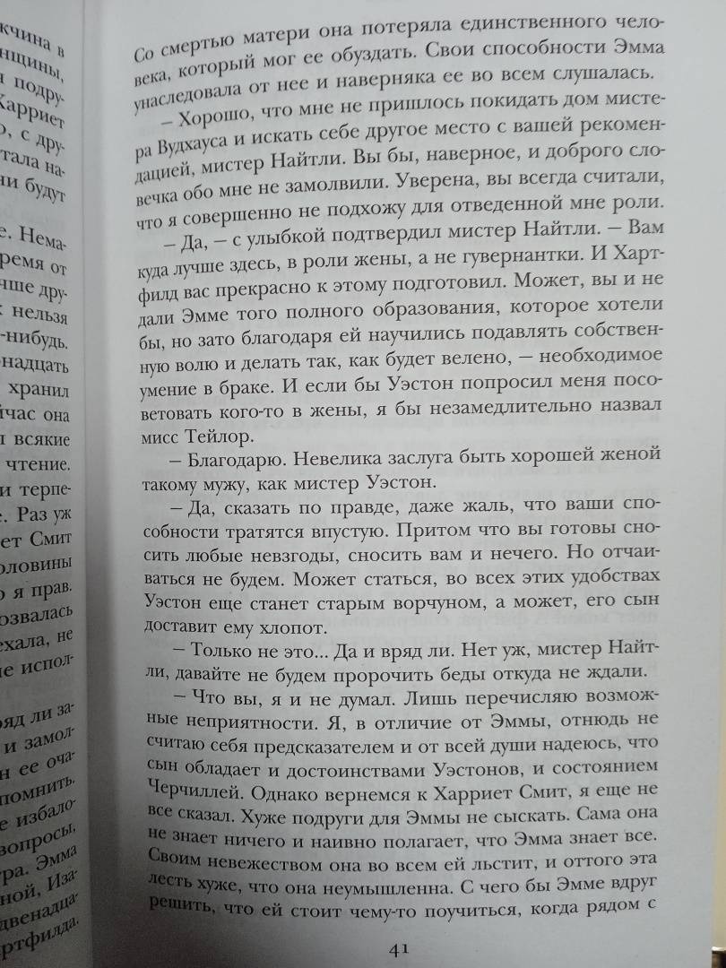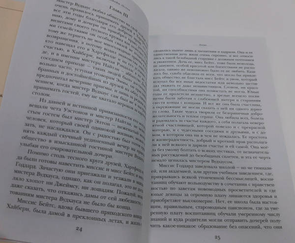 ОписаниеДжейн Остен по праву считают первой леди английской литературы. Ее произведения обязательны для изучения во всех колледжах и университетах Великобритании. Ее книги являются признанными шедеврами и покоряют искренностью и простотой сюжета."Эмма" - самое едкое, самое точное и саркастичное из произведений писательницы, оно же - последнее, увидевшее свет при ее жизни. Эта история достаточно нетипичная: героиня не бедна, у нее все есть - хороший дом, любящий отец, состояние, нет только мужа. Но она и не торопится замуж, предпочитая устраивать судьбы своих подруг и знакомых и тем самым порой попадая впросак. При этом, занимаясь чужой личной жизнью, Эмма чуть не проглядела собственное счастье.В издание также включлены изящниые и ирочничные романы "Любовь и дружба" и "Замок Лесли".Джейн Остен по праву считают первой леди английской литературы. Ее произведения обязательны для изучения во всех колледжах и университетах Великобритании. Ее книги являются признанными шедеврами и покоряют искренностью и простотой сюжета."Эмма" - самое едкое, самое точное и саркастичное из произведений писательницы, оно же - последнее, увидевшее свет при ее жизни. Эта история достаточно нетипичная: героиня не бедна, у нее все есть - хороший дом, любящий отец, состояние, нет только мужа. Но она и не торопится замуж, предпочитая устраивать судьбы своих подруг и знакомых и тем самым порой попадая впросак. При этом, занимаясь чужой личной жизнью, Эмма чуть не проглядела собственное счастье.В издание также включлены изящниые и ирочничные романы "Любовь и дружба" и "Замок Лесли".