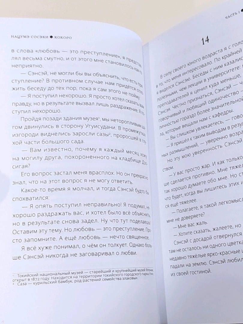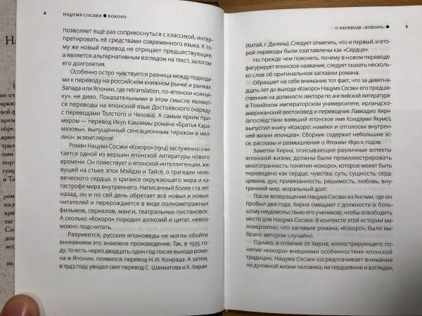 ОписаниеНацумэ Сосэки заслуженно считают одним из наиболее ярких авторов Японии, ключевой фигурой литературы нового времени. Его ранние работы обрели популярность благодаря яркому стилю и тематике, а две трилогии, написанные уже зрелым мастером, являются точным портретом японской интеллигенции на стыке эпох Мэйдзи и Тайсё. Центральные темы поздних романов автора — внутренний надлом, изоляция личности, кризис окружающего мира и катастрофа внутреннего. Нацумэ Сосэки известен не только художественной прозой, но также эссеистикой и поэзией. Его работы переведены на многие языки мира. Роман «Кокоро» Нацумэ Сосэки впервые увидел свет в 1914 году на страницах газеты «Асахи Симбун». Произведение состоит из трёх частей и включает в себя сто десять глав. Центральная тема романа, обозначенная в самом заглавии, — внутренний мир человека, его «кокоро» в эпоху драматичных событий, которые переживала Япония на рубеже веков и формаций. На родине автора роман является настоящим бестселлером и не раз был экранизирован. «Кокоро» — одно из первых, знаковых произведений современной японской литературы, переведённых на русский язык. В 1935 году вышел перевод академика Н. И. Конрада, а в 1943 году — перевод С. Шахматова и Х. Хираи. И в том и в другом случае название романа было переведено как «Сердце». Данное издание представляет собой третий перевод романа на русский язык.СвернутьНацумэ Сосэки заслуженно считают одним из наиболее ярких авторов Японии, ключевой фигурой литературы нового времени. Его ранние работы обрели популярность благодаря яркому стилю и тематике, а две трилогии, написанные уже зрелым мастером, являются точным портретом японской интеллигенции на стыке эпох Мэйдзи и Тайсё. Центральные темы поздних романов автора — внутренний надлом, изоляция личности, кризис окружающего мира и катастрофа внутреннего. Нацумэ Сосэки известен не только художественной прозой, но также эссеистикой и поэзией. Его работы переведены на многие языки мира. Роман «Кокоро» Нацумэ Сосэки впервые увидел свет в 1914 году на страницах газеты «Асахи Симбун». Произведение состоит из трёх частей и включает в себя сто десять глав. Центральная тема романа, обозначенная в самом заглавии, — внутренний мир человека, его «кокоро» в эпоху драматичных событий, которые переживала Япония на рубеже веков и формаций. На родине автора роман является настоящим бестселлером и не раз был экранизирован. «Кокоро» — одно из первых, знаковых произведений современной японской литературы, переведённых на русский язык. В 1935 году вышел перевод академика Н. И. Конрада, а в 1943 году — перевод С. Шахматова и Х. Хираи. И в том и в другом случае название романа было переведено как «Сердце». Данное издание представляет собой третий перевод романа на русский язык.СвернутьСвернуть
