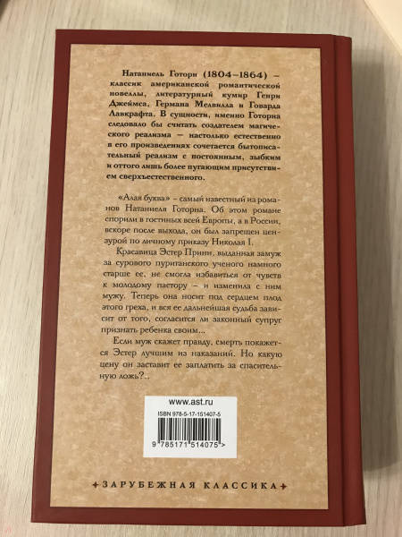 Объем, стр. 288 ISBN 978-5-17-151407-5 Автор Готорн Натаниель, Осенева Е. В. Переводчик Осенева Е. В. Серия Зарубежная классика Язык Русский Минимальный возраст 12+ Год издания книги 2022 Тип обложки Твердый переплет Иллюстрации Без иллюстраций Вес, г 252г Размеры 206х133х22 мм - Отзывы