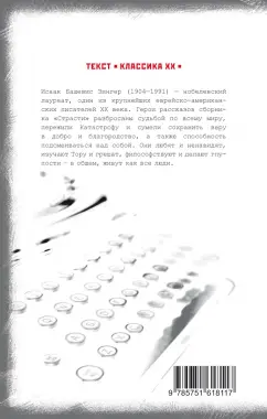 ОписаниеИсаак Башевис Зингер (1904-1991) - нобелевский лауреат, один из крупнейших еврейско-американских писателей ХХ века. За свою жизнь он написал десятки романов и множество рассказов для взрослых и детей.Герои рассказов сборника "Страсти" разбросаны судьбой по всему миру, пережили Катастрофу и сумели сохранить веру в добро и благородство, а также способность подсмеиваться над собой. Они любят и ненавидят, изучают Тору и грешат, философствуют и делают глупости - в общем, живут.Литературные достоинства этих рассказов были высоко оценены читателями во многих странах мира.Исаак Башевис Зингер (1904-1991) - нобелевский лауреат, один из крупнейших еврейско-американских писателей ХХ века. За свою жизнь он написал десятки романов и множество рассказов для взрослых и детей.Герои рассказов сборника "Страсти" разбросаны судьбой по всему миру, пережили Катастрофу и сумели сохранить веру в добро и благородство, а также способность подсмеиваться над собой. Они любят и ненавидят, изучают Тору и грешат, философствуют и делают глупости - в общем, живут.Литературные достоинства этих рассказов были высоко оценены читателями во многих странах мира.