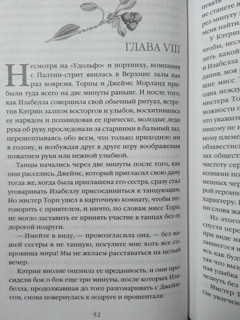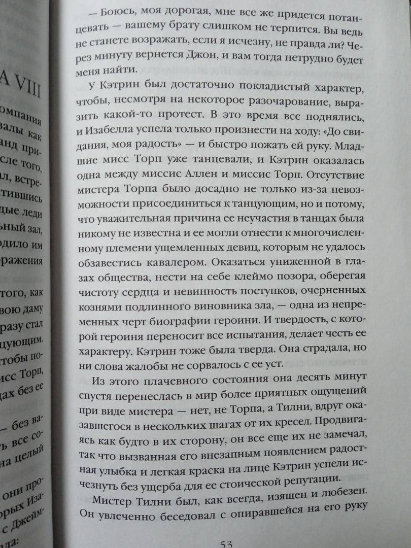 Описание«Нортенгерское аббатство» — самая озорная книга Джейн Остен, изящная ирония над канонами любовного романа. Родители Кэтрин не слишком богаты, но отнюдь не бедны. Она не слишком красива, но и не дурна собой. Кэтрин наивна, но лишь из-за недостатка жизненного опыта. Она обожает готические романы, и вся ее жизнь, как ей кажется, полна мрачных тайн и загадок. И только благодаря любви героиня обретает новый взгляд на реальность, ей открываются неведомые прежде стороны жизни. Джейн Остен (1775—1817) — английская писательница, провозвестница реализма и основоположница «семейного романа». Ее книги покоряют безыскусной искренностью, простотой сюжета, глубиной психологического портрета героев и ироничным «английским» юмором. Во всех колледжах и университетах Великобритании ее романы обязательны для изучения. Остен родилась в семье священника, где бытовали совсем не чопорные нравы. Не получив почти никакого формального образования, много читала и уже в четырнадцать лет начала писать. При жизни ее книги публиковались анонимно, от лица некой «Леди». Помимо многочисленных экранизаций романов, и о жизни писательницы было снято несколько художественных фильмов.Свернуть«Нортенгерское аббатство» — самая озорная книга Джейн Остен, изящная ирония над канонами любовного романа. Родители Кэтрин не слишком богаты, но отнюдь не бедны. Она не слишком красива, но и не дурна собой. Кэтрин наивна, но лишь из-за недостатка жизненного опыта. Она обожает готические романы, и вся ее жизнь, как ей кажется, полна мрачных тайн и загадок. И только благодаря любви героиня обретает новый взгляд на реальность, ей открываются неведомые прежде стороны жизни. Джейн Остен (1775—1817) — английская писательница, провозвестница реализма и основоположница «семейного романа». Ее книги покоряют безыскусной искренностью, простотой сюжета, глубиной психологического портрета героев и ироничным «английским» юмором. Во всех колледжах и университетах Великобритании ее романы обязательны для изучения. Остен родилась в семье священника, где бытовали совсем не чопорные нравы. Не получив почти никакого формального образования, много читала и уже в четырнадцать лет начала писать. При жизни ее книги публиковались анонимно, от лица некой «Леди». Помимо многочисленных экранизаций романов, и о жизни писательницы было снято несколько художественных фильмов.СвернутьСвернуть