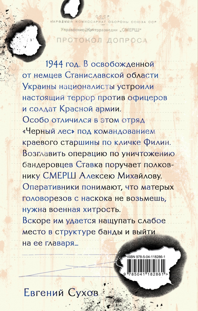 Описание1944 год. В освобожденной от немцев Станиславской области Украины националисты устроили настоящий террор против офицеров и солдат Красной армии. Особо отличился в этом отряд "Черный лес" под командованием краевого старшины по кличке Филин. Возглавить операцию по уничтожению бандеровцев Ставка поручает полковнику СМЕРШ Алексею Михайлову. Оперативники понимают, что матерых головорезов с наскока не возьмешь, нужна военная хитрость. Вскоре им удается нащупать слабое место в структуре банды и выйти на ее главаря…1944 год. В освобожденной от немцев Станиславской области Украины националисты устроили настоящий террор против офицеров и солдат Красной армии. Особо отличился в этом отряд "Черный лес" под командованием краевого старшины по кличке Филин. Возглавить операцию по уничтожению бандеровцев Ставка поручает полковнику СМЕРШ Алексею Михайлову. Оперативники понимают, что матерых головорезов с наскока не возьмешь, нужна военная хитрость. Вскоре им удается нащупать слабое место в структуре банды и выйти на ее главаря…