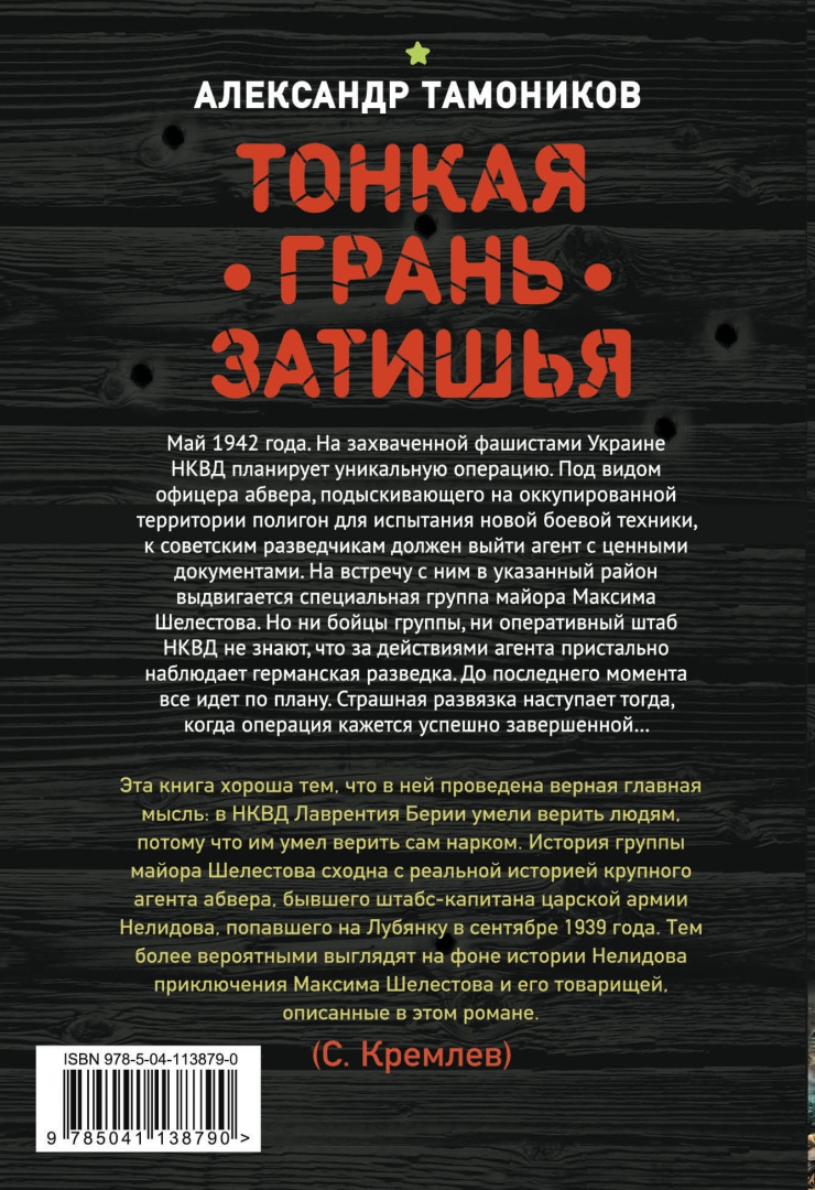 Общий тираж книг А. Тамоникова – около 10 миллионов экземпляров.Май 1942 года. На захваченной фашистами Украине НКВД планирует уникальную операцию. Под видом офицера абвера, подыскивающего на оккупированной территории полигон для испытания новой боевой техники, к советским разведчикам должен выйти агент с ценными документами. На встречу с ним в указанный район выдвигается специальная группа майора Максима Шелестова. Но ни бойцы группы, ни оперативный штаб НКВД не знают, что за действиями агента пристально наблюдает германская разведка. До последнего момента все идет по плану. Страшная развязка наступает тогда, когда операция кажется успешно завершенной…Роман о военном времени, о сложных судьбах и опасной работе неизвестных героев, вошедших в ударный состав «спецназа Берии».