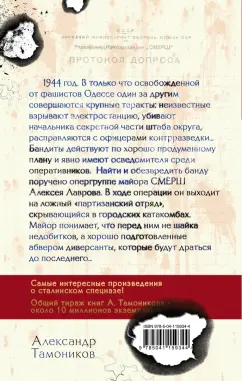 Описание1944 год. В только что освобожденной от фашистов Одессе один за другим совершаются крупные теракты: неизвестные взрывают электростанцию, убивают начальника секретной части штаба округа, расправляются с офицерами контрразведки… Бандиты действуют по хорошо продуманному плану и явно имеют осведомителя среди оперативников. Найти и обезвредить банду поручено опергруппе майора СМЕРШ Алексея Лаврова. В ходе операции он выходит на ложный "партизанский отряд", скрывающийся в городских катакомбах. Майор понимает, что перед ним не шайка недобитков, а хорошо подготовленные абвером диверсанты, которые будут драться до последнего…1944 год. В только что освобожденной от фашистов Одессе один за другим совершаются крупные теракты: неизвестные взрывают электростанцию, убивают начальника секретной части штаба округа, расправляются с офицерами контрразведки… Бандиты действуют по хорошо продуманному плану и явно имеют осведомителя среди оперативников. Найти и обезвредить банду поручено опергруппе майора СМЕРШ Алексея Лаврова. В ходе операции он выходит на ложный "партизанский отряд", скрывающийся в городских катакомбах. Майор понимает, что перед ним не шайка недобитков, а хорошо подготовленные абвером диверсанты, которые будут драться до последнего…