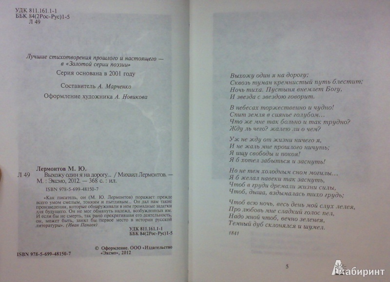 Объем, стр. 368 ISBN 978-5-699-48150-7 Автор Лермонтов Михаил Юрьевич Серия Золотая серия поэзии Год издания книги 2011 Тип обложки Твердый переплет Иллюстрации Черно-белые Вес, г 282 Размеры 170х125х20 мм - Отзывы