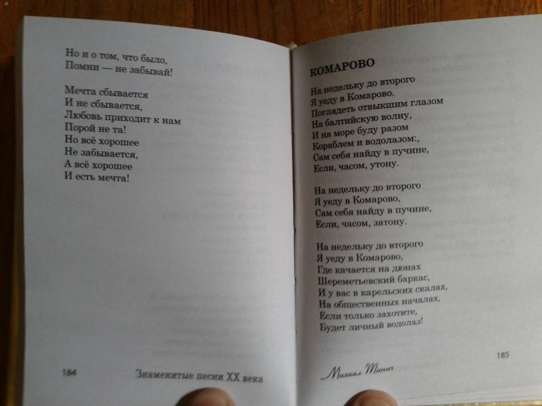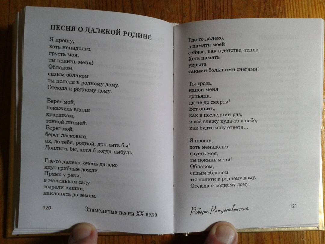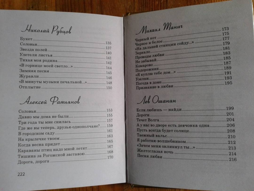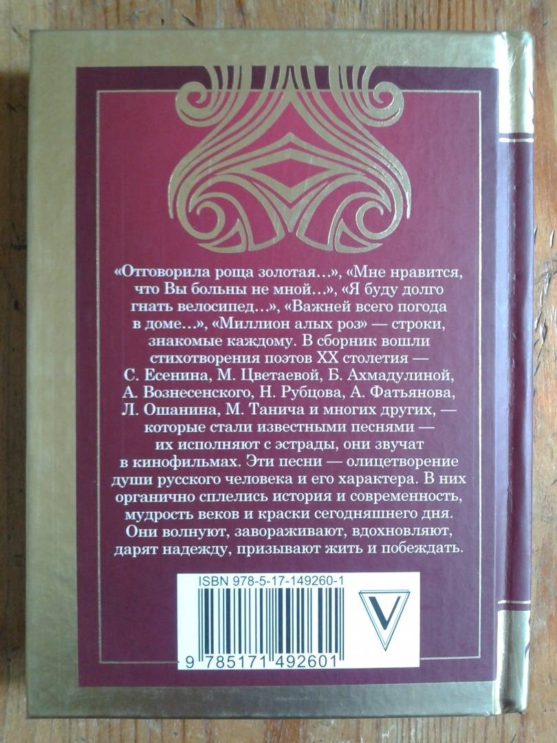 В сборник вошли стихотворения поэтов XX столетия – С. Есенина, М. Цветаевой, Б. Ахмадулиной, А. Вознесенского, Н. Рубцова, А. Фатьянова, Л. Ошанина, М. Танича и многих других, — которые стали известными песнями — их исполняют с эстрады, они звучат в кинофильмах.