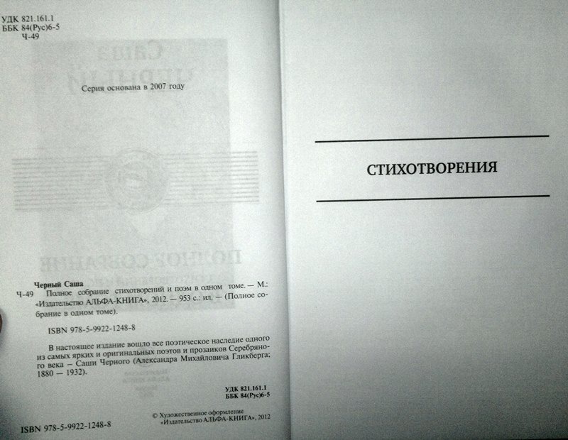 ---Саша Черный: Полное собрание стихотворений и поэм в одном томеРусская классическая и современная литератураЗарубежная художественная литератураРусская художественная литератураФэнтезиДраматургияПоэзияПриключенияФантастикаЭпос и фольклорКлассическая прозаАфоризмыИсторическая прозаДетективыБасниСентиментальная прозаОтечественный боевикСовременная прозаМолодежная литератураЗарубежная классическая и современная литература