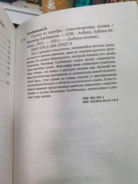 Объем, стр. 320 ISBN 978-5-389-19927-9 Автор Хлебников Велимир Серия Азбука-поэзия Язык Русский Минимальный возраст 16+ Год издания книги 2021 Тип обложки Твердый переплет Иллюстрации Без иллюстраций Вес, г 280г Размеры 170х120х17 мм - Отзывы