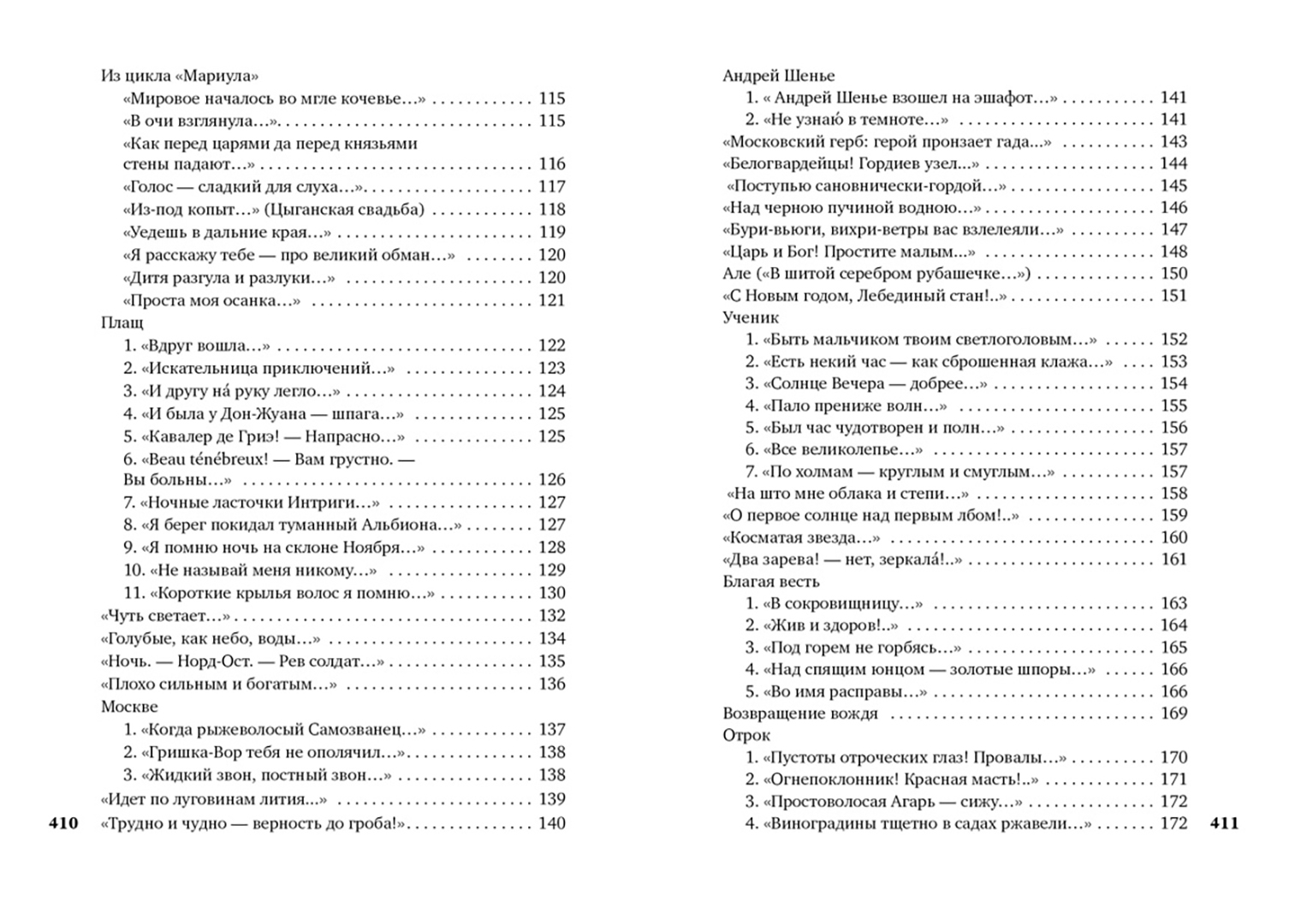 Описание«Наряду с Анной Ахматовой, Марина Цветаева занимает… первенствующее место среди русских поэтесс. Ее своеобразный стих, полная внутренняя свобода, лирическая сила, неподдельная искренность и настоящая женственность настроений — качества, никогда ей не изменяющие», — писал в 1921 году Константин Бальмонт, обозначив основные черты цветаевской поэзии. «Женственность настроений» соединяется у Цветаевой с удивительной способностью безоглядно отдаваться тому, кто испытывает в ней «смертную надобу». При этом ее лирическую героиню никогда не оставляет осознание трагического разлада с миром, неизбывного конфликта поэта с реалиями жизни, в которой трудно найти «путь души к душе», где «стопудовый быт» сталкивается с «бытием», «суетное» – с «вечным». В сборник включены стихотворения разных лет и поэмы, в числе которых величайшие шедевры русской любовной поэзии двадцатого века: «Поэма Горы» и «Поэма Конца».«Наряду с Анной Ахматовой, Марина Цветаева занимает… первенствующее место среди русских поэтесс. Ее своеобразный стих, полная внутренняя свобода, лирическая сила, неподдельная искренность и настоящая женственность настроений — качества, никогда ей не изменяющие», — писал в 1921 году Константин Бальмонт, обозначив основные черты цветаевской поэзии. «Женственность настроений» соединяется у Цветаевой с удивительной способностью безоглядно отдаваться тому, кто испытывает в ней «смертную надобу». При этом ее лирическую героиню никогда не оставляет осознание трагического разлада с миром, неизбывного конфликта поэта с реалиями жизни, в которой трудно найти «путь души к душе», где «стопудовый быт» сталкивается с «бытием», «суетное» – с «вечным». В сборник включены стихотворения разных лет и поэмы, в числе которых величайшие шедевры русской любовной поэзии двадцатого века: «Поэма Горы» и «Поэма Конца».