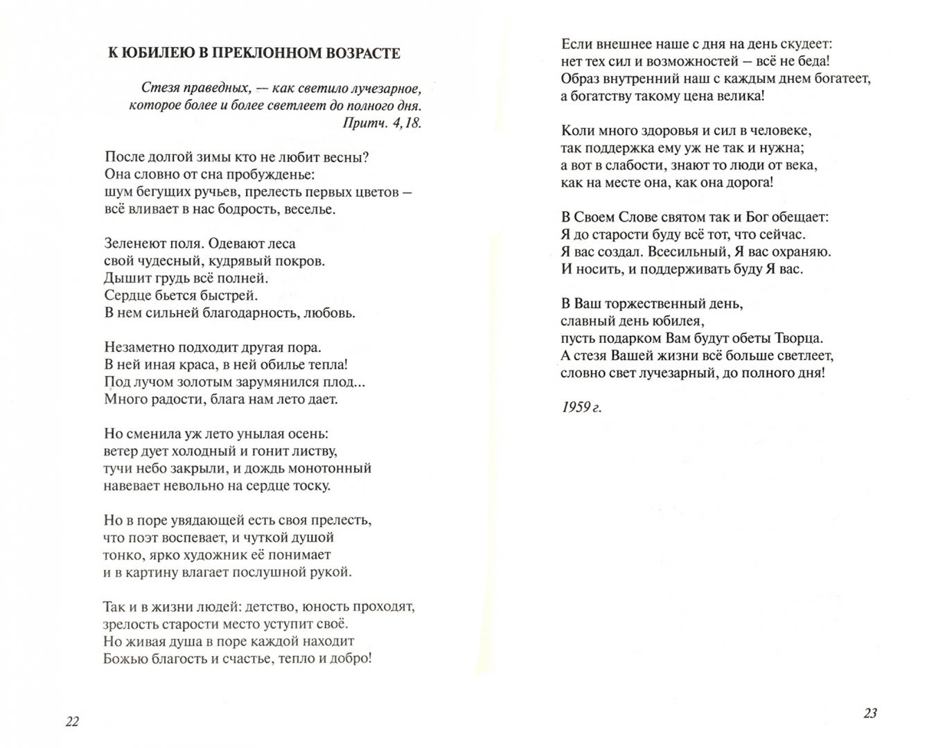 ОписаниеЛидия Жидкова (1925 г. р.) - поэтесса, хорошо известная в среде русского евангельского братства. Она внесла неоценимый вклад в развитие протестантской культуры в России. Вместе с супругом, Михаилом Жидковым, они вырастили троих детей и прожили вместе 55 лет до кончины мужа в 2004 году. В стихах Лидии Львовны отразилась ее собственная жизнь, история и знаменательные вехи евангельского братства. В них - и радость духовных побед и горечь земных утрат, а главное - неизменное упование на Господа. Перед вами исповедь ее сердца - мудрого, любящего, ранимого, неравнодушного и бесконечно верного своему Господу.Лидия Жидкова (1925 г. р.) - поэтесса, хорошо известная в среде русского евангельского братства. Она внесла неоценимый вклад в развитие протестантской культуры в России. Вместе с супругом, Михаилом Жидковым, они вырастили троих детей и прожили вместе 55 лет до кончины мужа в 2004 году. В стихах Лидии Львовны отразилась ее собственная жизнь, история и знаменательные вехи евангельского братства. В них - и радость духовных побед и горечь земных утрат, а главное - неизменное упование на Господа. Перед вами исповедь ее сердца - мудрого, любящего, ранимого, неравнодушного и бесконечно верного своему Господу.
