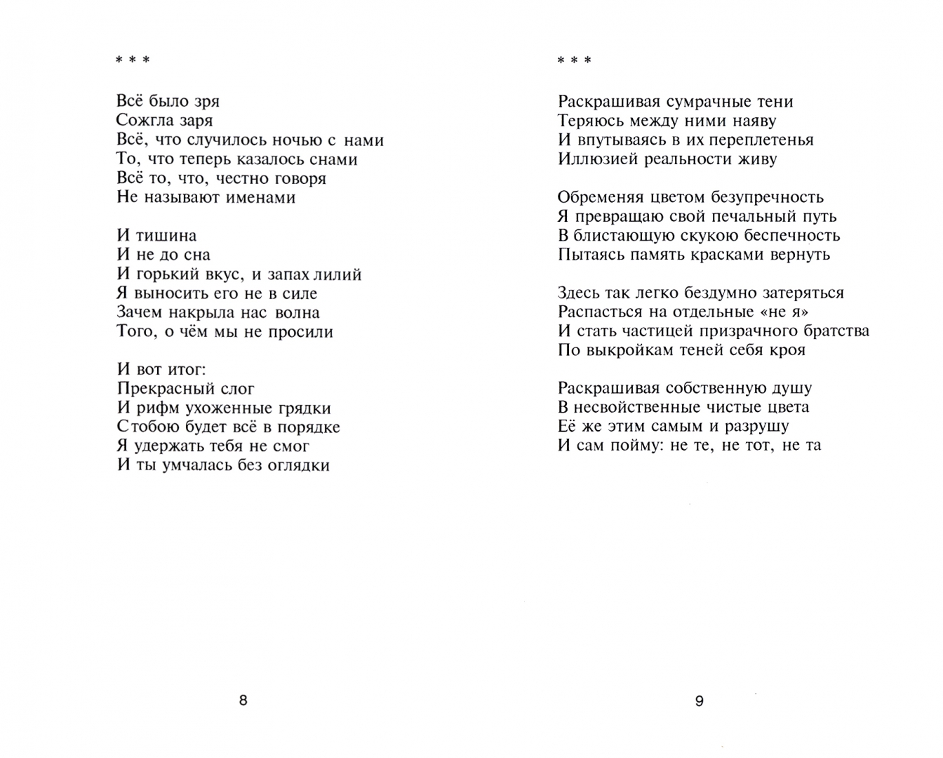 ОписаниеАнна Нимус — поэт необычный, со своей, узнаваемой манерой письма, очень современной, жесткой, запоминающийся не столько образностью и стилистикой, сколько особым строением композиции стихотворения, позволяющим читателю присутствовать здесь и сейчас. Казалось бы, тематика сборника «Раскрашенные тени» достаточно мрачная: одиночество, холод душевный и телесный, враждебность мира встречаются практически в каждом отдельно взятом стихотворении. Поэтесса словно бы балансирует на грани срыва... Но это только на первый взгляд. Стихотворения Анны полны жертвенности и женственности, когда нужно отказаться от себя и возродится вновь. Анна умудряется писать о самых тонких, важных, болезненных вещах, не впадая ни в пафос, ни в банальности, оставаясь простой и тонкой одновременно.Эта книга определенно из тех, которые в нужные моменты будут попадаться под руку, открываться на нужной странице и давать утешение и ощущение того, что даже в самых грустных своих мыслях ты не одинок.Анна Нимус — поэт необычный, со своей, узнаваемой манерой письма, очень современной, жесткой, запоминающийся не столько образностью и стилистикой, сколько особым строением композиции стихотворения, позволяющим читателю присутствовать здесь и сейчас. Казалось бы, тематика сборника «Раскрашенные тени» достаточно мрачная: одиночество, холод душевный и телесный, враждебность мира встречаются практически в каждом отдельно взятом стихотворении. Поэтесса словно бы балансирует на грани срыва... Но это только на первый взгляд. Стихотворения Анны полны жертвенности и женственности, когда нужно отказаться от себя и возродится вновь. Анна умудряется писать о самых тонких, важных, болезненных вещах, не впадая ни в пафос, ни в банальности, оставаясь простой и тонкой одновременно.Эта книга определенно из тех, которые в нужные моменты будут попадаться под руку, открываться на нужной странице и давать утешение и ощущение того, что даже в самых грустных своих мыслях ты не одинок.