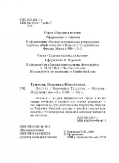 Объем, стр. 352 ISBN 978-5-04-091563-7 Автор Тушнова Вероника Михайловна Серия Золотая коллекция поэзии Минимальный возраст 16+ Год издания книги 2018 Тип обложки Твердый переплет Иллюстрации Без иллюстраций Вес, г 200г Размеры 145х115х20 мм - Отзывы