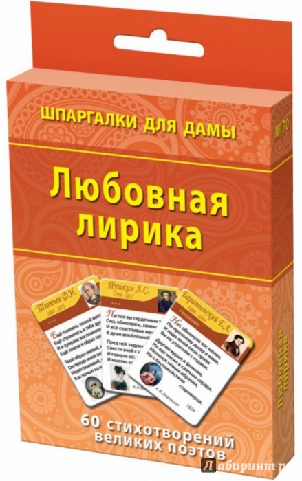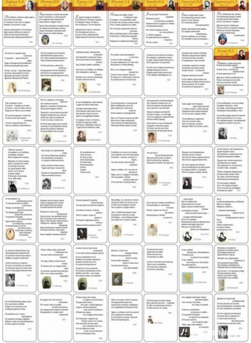 Описание50 маленьких карточек (90х65 мм) со стихами о любви: - 25 поэтов XIX-XX веков; - портреты дам сердца, которым посвящены стихи.50 маленьких карточек (90х65 мм) со стихами о любви: - 25 поэтов XIX-XX веков; - портреты дам сердца, которым посвящены стихи.