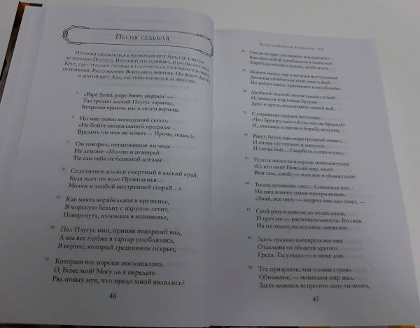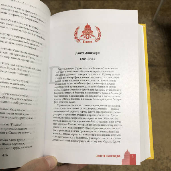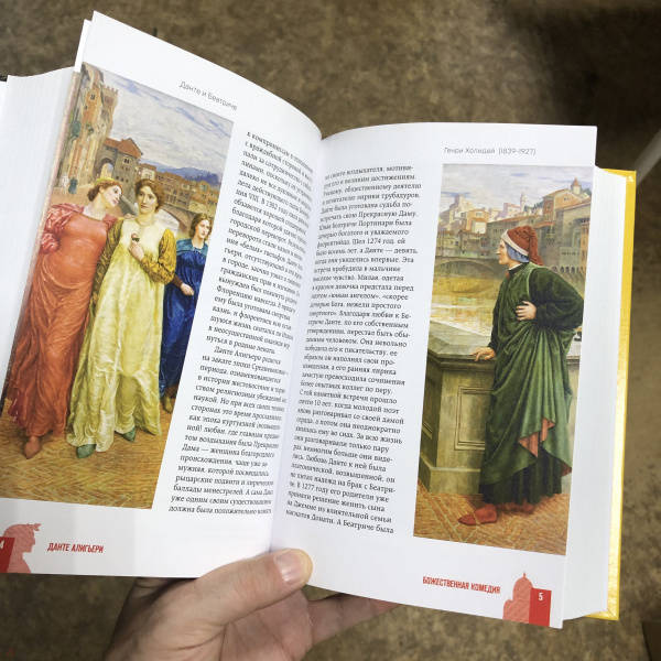 Описание"Божественная комедия" - грандиозный памятник поэтической культуры и настоящая энциклопедия средневекового мировоззрения. В ней поэт совершает путешествие через три царства загробного мира и с удивительной наглядностью и ясностью изображения дает живую, запоминающуюся картину происходящего там.Простой народ воспринимал поэму Данте буквально. Боккаччо рассказывал о двух жительницах Вероны, которые, заметив проходившего мимо Данте, обменялись многозначительными репликами. "Посмотри, - сказала одна, - вот тот, кто спускается в Ад и, возвращаясь оттуда, когда пожелает, приносит весть о пребывающих там грешниках. Другая ответила: "Должно быть, ты права: посмотри, как борода его курчава, и лицо его черно от дыма и копоти адского огня". В наши же дни историки и критики до сих пор не прекращают споры о том, чем является это великое произведение: "путеводителем" по загробному миру или попыткой познать непознаваемое, найти рациональное в иррациональном, показать людям путь от мрака и скорби к свету и радости.Свернуть"Божественная комедия" - грандиозный памятник поэтической культуры и настоящая энциклопедия средневекового мировоззрения. В ней поэт совершает путешествие через три царства загробного мира и с удивительной наглядностью и ясностью изображения дает живую, запоминающуюся картину происходящего там.Простой народ воспринимал поэму Данте буквально. Боккаччо рассказывал о двух жительницах Вероны, которые, заметив проходившего мимо Данте, обменялись многозначительными репликами. "Посмотри, - сказала одна, - вот тот, кто спускается в Ад и, возвращаясь оттуда, когда пожелает, приносит весть о пребывающих там грешниках. Другая ответила: "Должно быть, ты права: посмотри, как борода его курчава, и лицо его черно от дыма и копоти адского огня". В наши же дни историки и критики до сих пор не прекращают споры о том, чем является это великое произведение: "путеводителем" по загробному миру или попыткой познать непознаваемое, найти рациональное в иррациональном, показать людям путь от мрака и скорби к свету и радости.СвернутьСвернуть