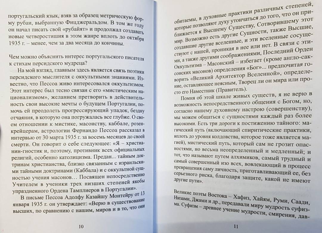 ОписаниеФернандо Пессоа (1888-1935), португальский писатель, поэт, мыслитель, знаком русскому читателю в основном благодаря антологии его стихов, изданной в прошлом столетии, и двум книгам, увидевшим свет уже в XXI веке: "Книге непокоя" и "Одам Рикарду Рейша". Сборник, который вы держите в руках, был собран по крупицам португальскими исследователями и опубликован в Португалии совсем недавно. Пессоа начал писать свой "Рубайят" в 1926 г. Последние четверостишия он создал в 1935 г., за два месяца до кончины. В сжатую и афористичную форму Пессоа сумел вместить глубинные мысли о мире и человеческой жизни. Читатель откроет для себя сложный, светлый и в то же время трагичный внутренний мир загадочного португальского поэта.Фернандо Пессоа (1888-1935), португальский писатель, поэт, мыслитель, знаком русскому читателю в основном благодаря антологии его стихов, изданной в прошлом столетии, и двум книгам, увидевшим свет уже в XXI веке: "Книге непокоя" и "Одам Рикарду Рейша". Сборник, который вы держите в руках, был собран по крупицам португальскими исследователями и опубликован в Португалии совсем недавно. Пессоа начал писать свой "Рубайят" в 1926 г. Последние четверостишия он создал в 1935 г., за два месяца до кончины. В сжатую и афористичную форму Пессоа сумел вместить глубинные мысли о мире и человеческой жизни. Читатель откроет для себя сложный, светлый и в то же время трагичный внутренний мир загадочного португальского поэта.