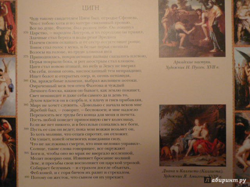ОписаниеИздание поэмы Публия Овидия Назона "Метаморфозы", подготовленное по принципам серии "Памятники мировой культуры". Книга проиллюстрирована произведениями мировой живописи, иллюстрациями из лучших изданий XVI-XX веков на русском и европейских языках. Для широкого круга читателей.Издание поэмы Публия Овидия Назона "Метаморфозы", подготовленное по принципам серии "Памятники мировой культуры". Книга проиллюстрирована произведениями мировой живописи, иллюстрациями из лучших изданий XVI-XX веков на русском и европейских языках. Для широкого круга читателей.