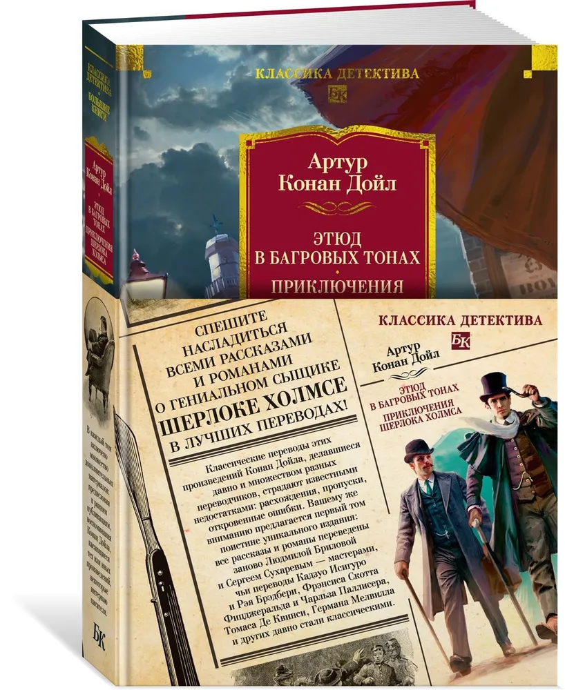ОписаниеАннотация к книге "Этюд в багровых тонах. Приключения Шерлока Холмса" Дойл А. К.:Английский врач и писатель сэр Артур Конан Дойл известен всему миру как непревзойденный мастер детективного жанра, автор множества произведений о гениальном сыщике Шерлоке Холмсе и его верном друге докторе Ватсоне. Классические переводы этих рассказов и романов, делавшиеся давно и множеством разных переводчиков, страдают известными недостатками: расхождения, пропуски, откровенные ошибки. Вашему вниманию предлагается первый том (роман «Этюд в багровых тонах», сборник «Приключения Шерлока Холмса») из четырехтомника с полным переводом всего холмсовского канона. Это воистину уникальное издание: все произведения цикла переведены заново Людмилой Бриловой и Сергеем Сухаревым — мастерами, чьи переводы Кадзуо Исигуро и Рэя Брэдбери, Фрэнсиса Скотта Фицджеральда и Чарльза Паллисера, Томаса Де Квинси, Германа Мелвилла и других давно стали классическими. При этом каждый том снабжен большим числом классических рисунков и дополнительными материалами: предисловия к ранним публикациям, воспоминания Конан Дойла, касающиеся тех или иных произведений, некоторые интервью писателя. В данную книгу включен полный комплект иллюстраций Сидни Пэджета, сопровождавших исходную публикацию «Приключений Шерлока Холмса» в журнале «Стрэнд», а также иллюстрации Йозефа Фридриха к одному из первых чешских изданий «Этюда в багровых тонах». Читать дальше…