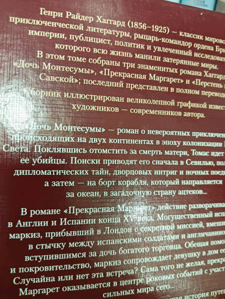 --Генри Райдер Хаггард: Дочь Монтесумы. Прекрасная Маргарет. Перстень царицы СавскойРусская классическая и современная литератураЗарубежная художественная литератураРусская художественная литератураФэнтезиДраматургияПоэзияПриключенияФантастикаЭпос и фольклорКлассическая прозаАфоризмыИсторическая прозаДетективыБасниСентиментальная прозаОтечественный боевикСовременная прозаМолодежная литератураЗарубежная классическая и современная литература