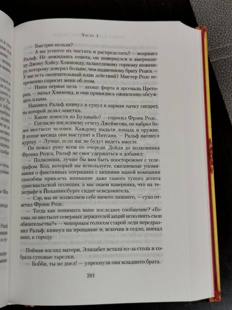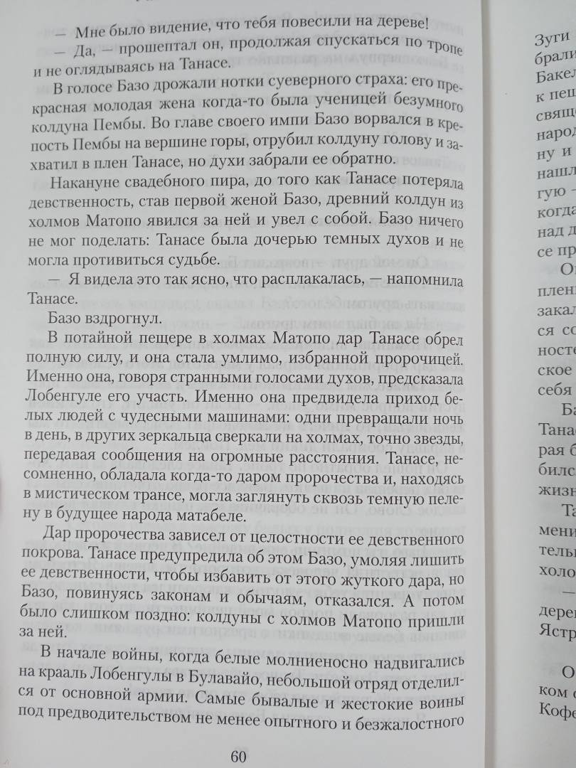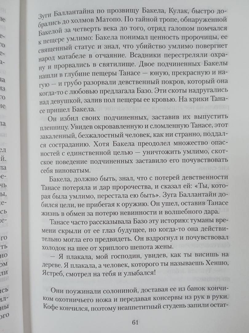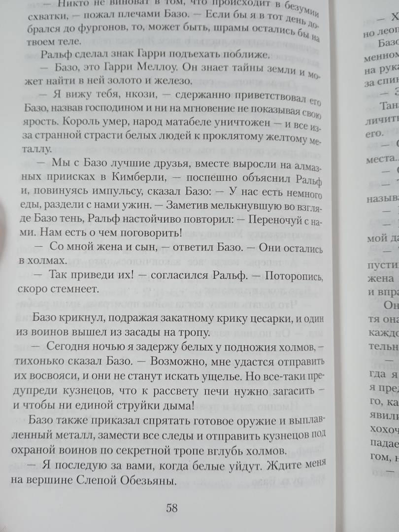 ОписаниеВ конце XIX века богатейшие месторождения алмазов и золота, открытые в Южной Африке, манили предприимчивых людей со всего света. Среди них был и коммерсант Ральф Баллантайн, ставший совладельцем прибыльной золотой шахты на территории древнего города Зимбабве. Но эти места священны для народа матабеле, изгнанного с родины, и чужакам запрещено сюда вторгаться. Отряды аборигенов готовятся напасть на лагерь белых переселенцев. Одного из военных вождей матабеле когда-то связывала с Ральфом искренняя дружба; они называли друг друга братьями. Что изменит их встреча накануне кровавой войны? История о любви и ненависти, о дружбе и предательстве, об алчности и чести - в третьем романе о семье Баллантайн.В конце XIX века богатейшие месторождения алмазов и золота, открытые в Южной Африке, манили предприимчивых людей со всего света. Среди них был и коммерсант Ральф Баллантайн, ставший совладельцем прибыльной золотой шахты на территории древнего города Зимбабве. Но эти места священны для народа матабеле, изгнанного с родины, и чужакам запрещено сюда вторгаться. Отряды аборигенов готовятся напасть на лагерь белых переселенцев. Одного из военных вождей матабеле когда-то связывала с Ральфом искренняя дружба; они называли друг друга братьями. Что изменит их встреча накануне кровавой войны? История о любви и ненависти, о дружбе и предательстве, об алчности и чести - в третьем романе о семье Баллантайн.