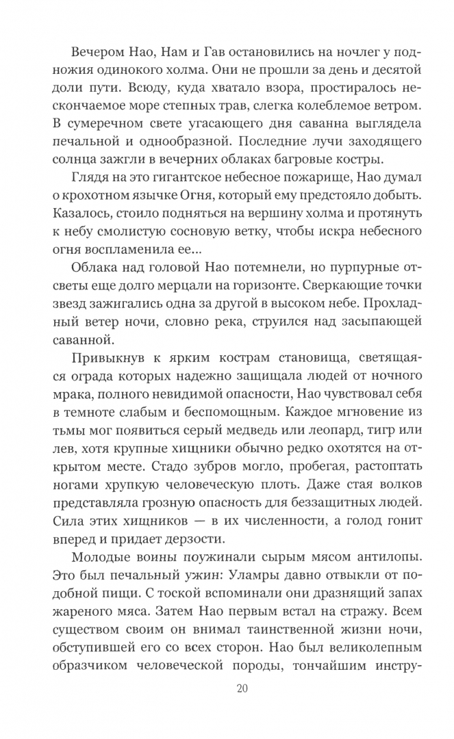 ОписаниеЖозеф Рони-старший, один из основоположников французской научной фантастики, продолжатель традиций Жюля Верна и Герберта Уэллса, работал в разных жанрах приключенческой литературы. В книгу вошли два его романа о жизни доисторических людей.В "Борьбе за Огонь" описывается трагедия осиротевшего племени Уламров. В результате схватки с врагами Уламры потеряли огонь и теперь вынуждены влачить жалкое существование. В отчаянии вождь племени обещает отдать свою дочь в жены тому, кто сможет вернуть источник жизни. И тогда два молодых воина отправляются в полный опасностей путь... По роману был снят фильм, удостоенный "Оскара" и "Сезара".В "Пещерном льве" история продолжается. Потомки героев ищут новые земли, где можно будет свободно охотиться, не зная голода. Их ждут захватывающие приключения и встречи с другими племенами и дикими животными, в том числе с гигантским пещерным львом.Жозеф Рони-старший, один из основоположников французской научной фантастики, продолжатель традиций Жюля Верна и Герберта Уэллса, работал в разных жанрах приключенческой литературы. В книгу вошли два его романа о жизни доисторических людей.В "Борьбе за Огонь" описывается трагедия осиротевшего племени Уламров. В результате схватки с врагами Уламры потеряли огонь и теперь вынуждены влачить жалкое существование. В отчаянии вождь племени обещает отдать свою дочь в жены тому, кто сможет вернуть источник жизни. И тогда два молодых воина отправляются в полный опасностей путь... По роману был снят фильм, удостоенный "Оскара" и "Сезара".В "Пещерном льве" история продолжается. Потомки героев ищут новые земли, где можно будет свободно охотиться, не зная голода. Их ждут захватывающие приключения и встречи с другими племенами и дикими животными, в том числе с гигантским пещерным львом.