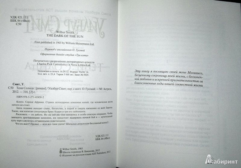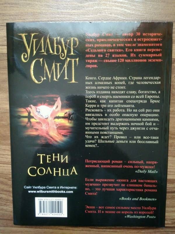 Объем, стр. 320 ISBN 978-5-271-42450-2 Автор Смит Уилбур, Гусева О. Переводчик Гусева О. Год издания книги 2012 Тип обложки Мягкий переплет Иллюстрации Без иллюстраций Вес, г 338г Размеры 210х162х15 мм - Отзывы