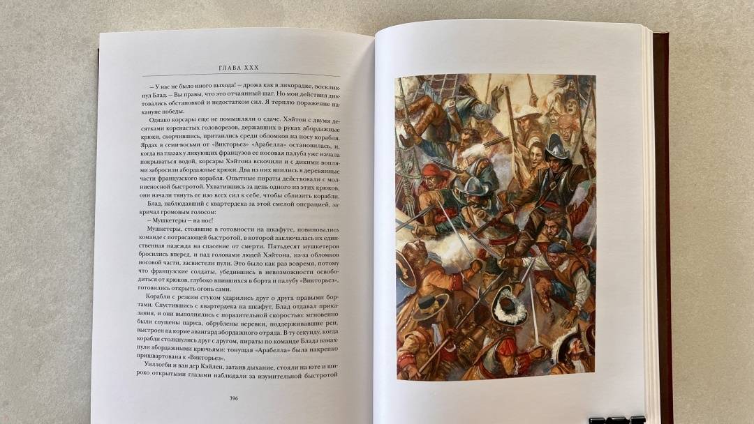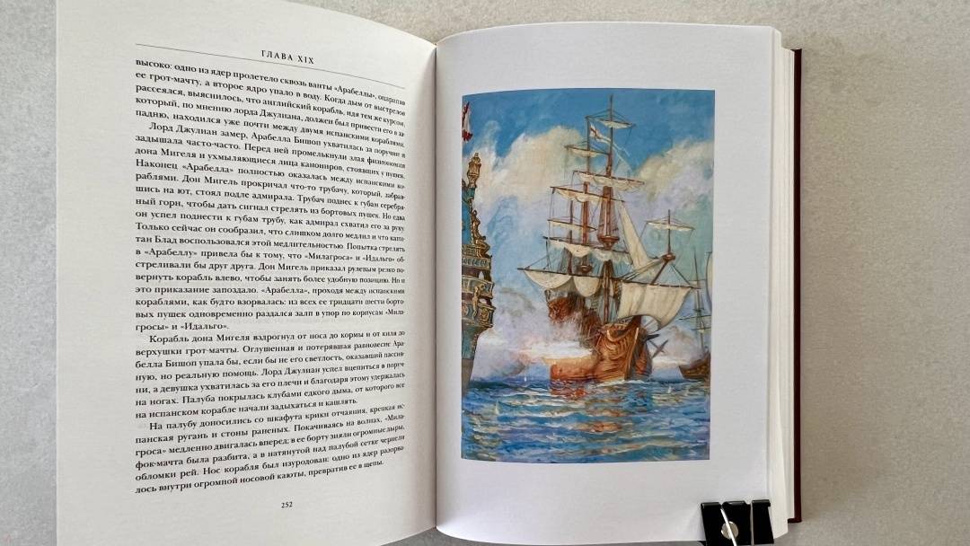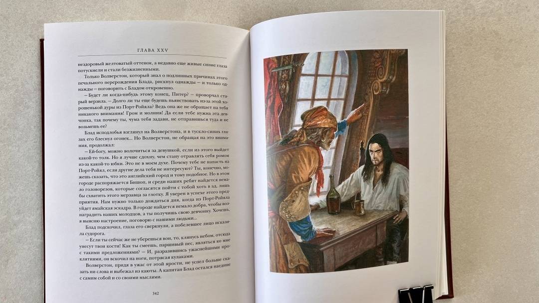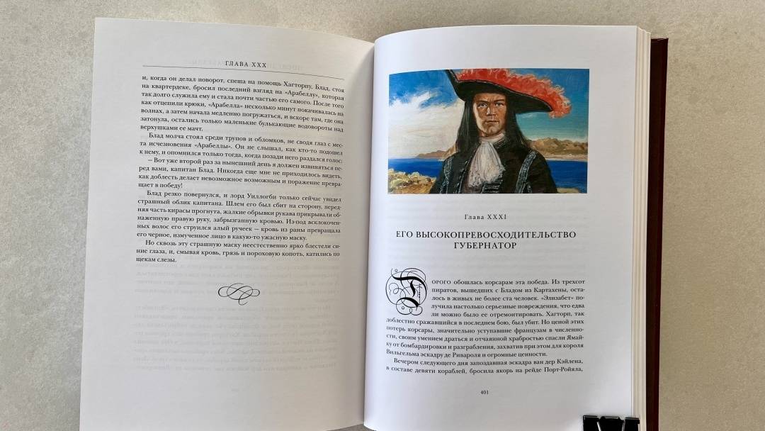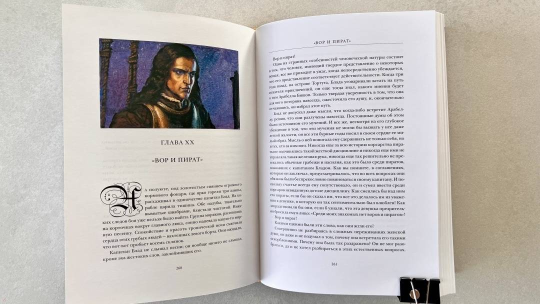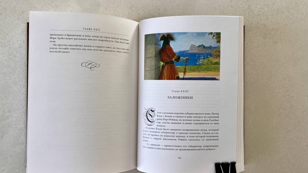 Описание«Одиссея капитана Блада» (1922) — самый популярный роман английского писателя Рафаэля Сабатини (1875–1950), ставший подлинной классикой историко-приключенческой литературы и принесший его создателю мировую славу. Его герой, Питер Блад, врач по профессии, обвиненный в государственной измене за помощь бунтовщику и сосланный на каторжные работы в Вест-Индию, совершает побег, дерзко захватив испанский галеон, и вскоре становится легендарным пиратским капитаном, грозой Карибского моря. Созданный Сабатини образ Блада, волей судьбы ставшего пиратом, но не потерявшего чести и достоинства, далек от примелькавшихся образов благородных разбойников, а воссозданная в романе атмосфера куда ближе к реальности, чем это может показаться на первый взгляд. Издание сопровождается статьей о жизни и творчестве Рафаэля Сабатини и обстоятельными комментариями. В книге впервые воспроизводится цикл иллюстраций к роману, созданный известным художником Виктором Бритвиным (1955–2023) специально для этого издания.«Одиссея капитана Блада» (1922) — самый популярный роман английского писателя Рафаэля Сабатини (1875–1950), ставший подлинной классикой историко-приключенческой литературы и принесший его создателю мировую славу. Его герой, Питер Блад, врач по профессии, обвиненный в государственной измене за помощь бунтовщику и сосланный на каторжные работы в Вест-Индию, совершает побег, дерзко захватив испанский галеон, и вскоре становится легендарным пиратским капитаном, грозой Карибского моря. Созданный Сабатини образ Блада, волей судьбы ставшего пиратом, но не потерявшего чести и достоинства, далек от примелькавшихся образов благородных разбойников, а воссозданная в романе атмосфера куда ближе к реальности, чем это может показаться на первый взгляд. Издание сопровождается статьей о жизни и творчестве Рафаэля Сабатини и обстоятельными комментариями. В книге впервые воспроизводится цикл иллюстраций к роману, созданный известным художником Виктором Бритвиным (1955–2023) специально для этого издания.