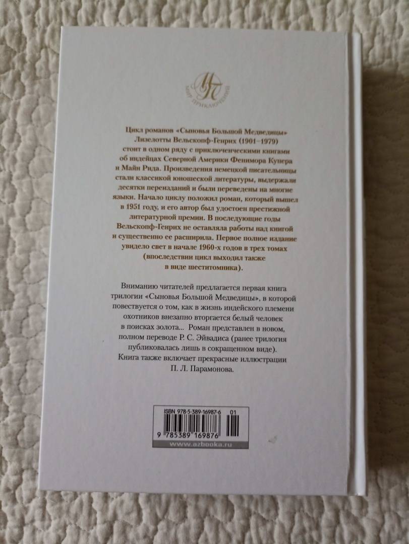 ОписаниеЦикл романов "Сыновья Большой Медведицы" Лизелотты Вельскопф-Генрих (1901-1979) стоит в одном ряду с приключенческими книгами об индейцах Северной Америки Фенимора Купера и Майн Рида. Произведения немецкой писательницы стали классикой юношеской литературы, выдержали десятки переизданий и были переведены на многие языки. Начало циклу положил одноименный роман, который вышел в 1951 году, и его автор был удостоен престижной литературной премии. В последующие годы Вельскопф-Генрих не оставляла работы над книгой и существенно ее расширила. Первое полное издание увидело свет в начале 1960-х годов в трех томах (впоследствии цикл выходил также в виде шеститомника). Вниманию читателей предлагается первая книга трилогии "Харка, сын вождя", в которой повествуется о том, как в жизнь индейского племени охотников внезапно вторгается белый человек в поисках золота... Роман представлен в новом, полном переводе Р. С. Эйвадиса (ранее "Сыновья Большой Медведицы" публиковались лишь в сокращенном виде). Книга также включает прекрасные иллюстрации П. Л. Парамонова.СвернутьЦикл романов "Сыновья Большой Медведицы" Лизелотты Вельскопф-Генрих (1901-1979) стоит в одном ряду с приключенческими книгами об индейцах Северной Америки Фенимора Купера и Майн Рида. Произведения немецкой писательницы стали классикой юношеской литературы, выдержали десятки переизданий и были переведены на многие языки. Начало циклу положил одноименный роман, который вышел в 1951 году, и его автор был удостоен престижной литературной премии. В последующие годы Вельскопф-Генрих не оставляла работы над книгой и существенно ее расширила. Первое полное издание увидело свет в начале 1960-х годов в трех томах (впоследствии цикл выходил также в виде шеститомника). Вниманию читателей предлагается первая книга трилогии "Харка, сын вождя", в которой повествуется о том, как в жизнь индейского племени охотников внезапно вторгается белый человек в поисках золота... Роман представлен в новом, полном переводе Р. С. Эйвадиса (ранее "Сыновья Большой Медведицы" публиковались лишь в сокращенном виде). Книга также включает прекрасные иллюстрации П. Л. Парамонова.СвернутьСвернуть