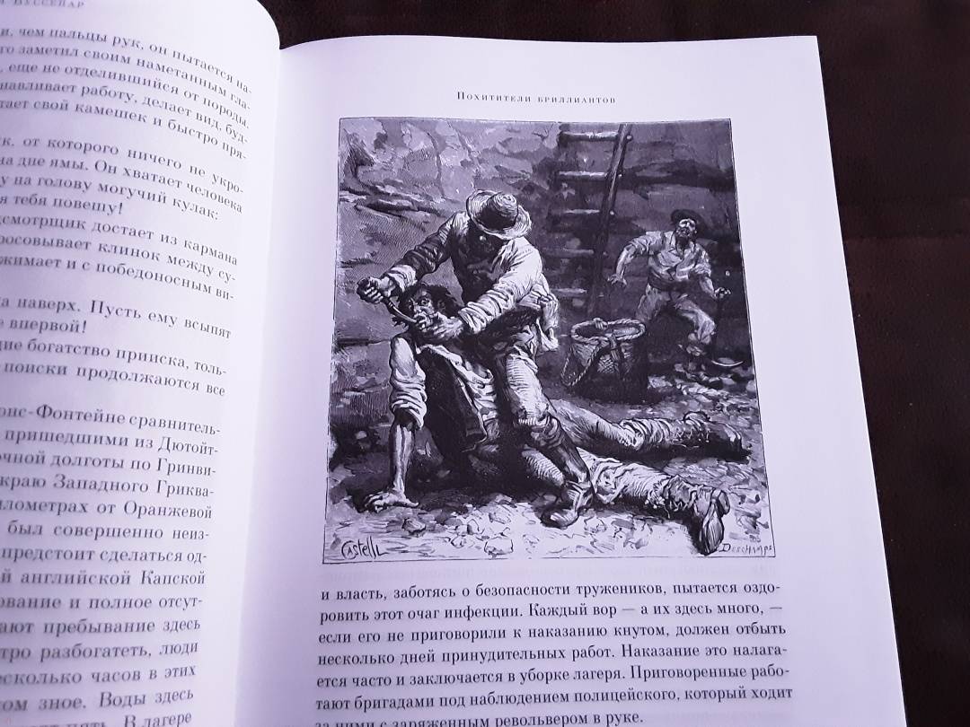 На русском языке роман выходил со многими лакунами, неточностями и упущениями. Для настоящего издания перевод был заново отредактирован и тщательно сверен с оригиналом. Можно сказать, что роман «Похитители бриллиантов» впервые приходит к читателям в полном виде в сопровождении комплекта иллюстраций из еженедельника Journal des voyages, где он публиковался с 4 марта 1883 года по 24 февраля 1884 года. Издание сопровождают подробный комментарий, статьи о жизни и творчестве автора, а также несколько рассказов Буссенара, впервые переведенные на русский язык.СвернутьФранцузский писатель Луи Буссенар — автор многочисленных приключенческих романов, не уступающих лучшим произведениям Жюля Верна. Их отличительные черты: богатство фантазии, чувство юмора, романтика далеких стран и обширный научный материал.