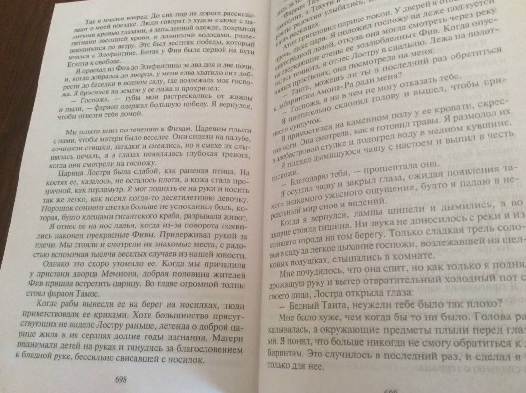ОписаниеСлабый правитель способен свести на нет все достижения предшественников... Пока фараон наслаждается пышными празднествами и зрелищем кровавых мистерий, междоусобная война расшатывает могущество Древнего Египта, на границах свирепствуют дикие племена, за пределами городов бесчинствуют разбойники, а с востока к берегам Нила приближаются полчища варваров-гиксосов на колесницах, запряженных невиданными гривастыми зверями. Понимая, что ослабленному царству грозит неминуемая гибель, супруга фараона и мать наследника царица Лостра решается покинуть Стовратные Фивы. С помощью своего верного слуги и советника Таиты она снаряжает огромную флотилию, чтобы отступить к верховьям Нила, сохранив египетский народ и армию. Впереди — страшные пороги Великой реки и неведомые земли Африки, полные чудес и опасностей...Слабый правитель способен свести на нет все достижения предшественников... Пока фараон наслаждается пышными празднествами и зрелищем кровавых мистерий, междоусобная война расшатывает могущество Древнего Египта, на границах свирепствуют дикие племена, за пределами городов бесчинствуют разбойники, а с востока к берегам Нила приближаются полчища варваров-гиксосов на колесницах, запряженных невиданными гривастыми зверями. Понимая, что ослабленному царству грозит неминуемая гибель, супруга фараона и мать наследника царица Лостра решается покинуть Стовратные Фивы. С помощью своего верного слуги и советника Таиты она снаряжает огромную флотилию, чтобы отступить к верховьям Нила, сохранив египетский народ и армию. Впереди — страшные пороги Великой реки и неведомые земли Африки, полные чудес и опасностей...