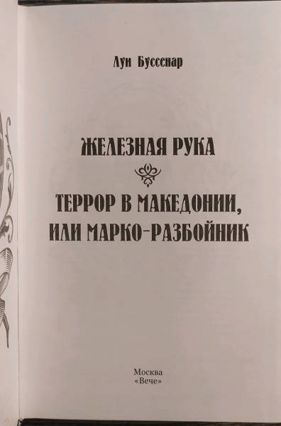 --Луи Буссенар: Железная Рука. Террор в Македонии, или Марко-разбойникРусская классическая и современная литератураЗарубежная художественная литератураРусская художественная литератураФэнтезиДраматургияПоэзияПриключенияФантастикаЭпос и фольклорКлассическая прозаАфоризмыИсторическая прозаДетективыБасниСентиментальная прозаОтечественный боевикСовременная прозаМолодежная литератураЗарубежная классическая и современная литература