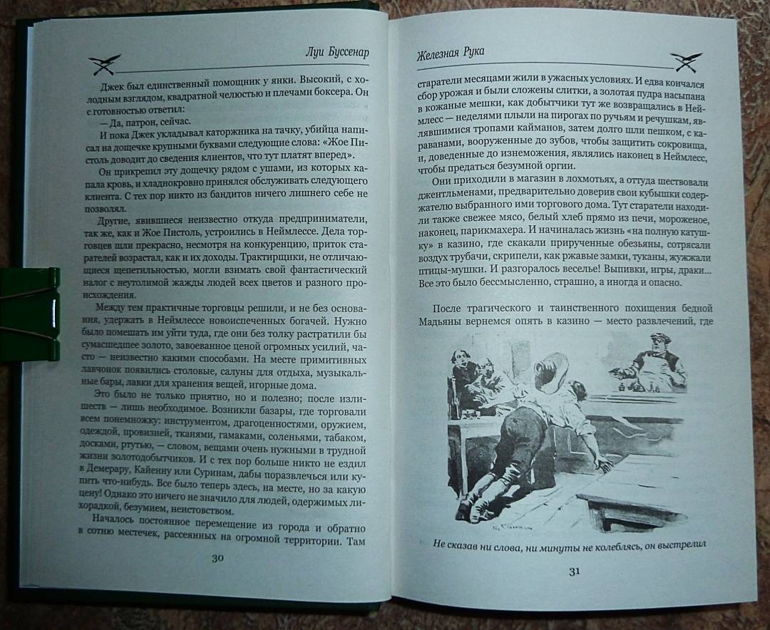 ОписаниеНеймлесс-Сити - городок без названия. Ничейная земля где-то на границе с Бразилией. Здесь, в одной из соломенных хижин, открытой всем ветрам и гордо именующей себя "казино", всегда полно народу. Трудяги-старатели с физиономиями беглых каторжников приходят сюда перевести дух, отрешиться от забот, хрустя засаленными колодами карт и швыряя монету или золотой песок в обмен на выпивку и дивный голос черноокой Мадьяны. Они готовы все отдать за ее песню, ее взгляд, но подойти, коснуться руки прекрасной креолки - о нет, себе дороже! Шею гордой дочери конкистадоров овивает надежный защитник - красная змейка с ядовитым жалом. Но в диких головах быстро зреют хитрые планы. Ведь красавица еще и владеет тайной, о которой мечтает каждый на этой земле.В очередной том Луи Буссенара входят две новые лихо закрученные авантюры: гвианская - "Железная Рука" и балканская - "Террор в Македонии".Неймлесс-Сити - городок без названия. Ничейная земля где-то на границе с Бразилией. Здесь, в одной из соломенных хижин, открытой всем ветрам и гордо именующей себя "казино", всегда полно народу. Трудяги-старатели с физиономиями беглых каторжников приходят сюда перевести дух, отрешиться от забот, хрустя засаленными колодами карт и швыряя монету или золотой песок в обмен на выпивку и дивный голос черноокой Мадьяны. Они готовы все отдать за ее песню, ее взгляд, но подойти, коснуться руки прекрасной креолки - о нет, себе дороже! Шею гордой дочери конкистадоров овивает надежный защитник - красная змейка с ядовитым жалом. Но в диких головах быстро зреют хитрые планы. Ведь красавица еще и владеет тайной, о которой мечтает каждый на этой земле.В очередной том Луи Буссенара входят две новые лихо закрученные авантюры: гвианская - "Железная Рука" и балканская - "Террор в Македонии".