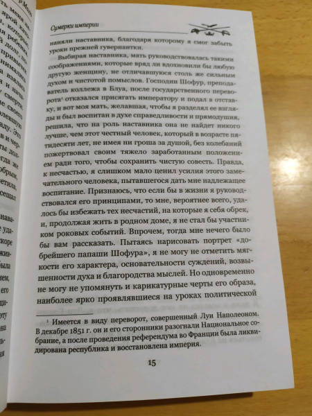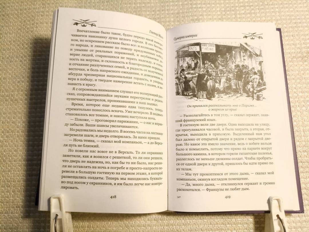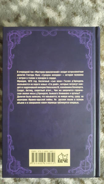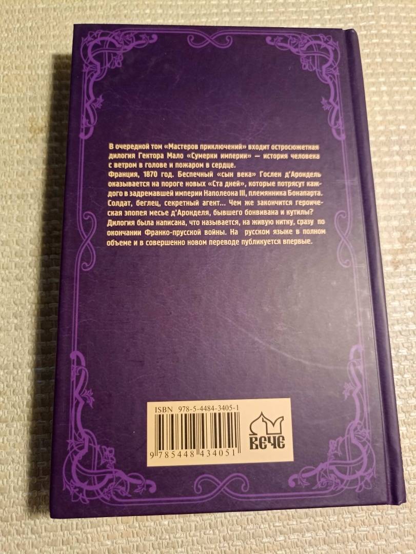 ОписаниеВ очередной том "Мастеров приключений" входит остросюжетная дилогия Гектора Мало "Сумерки империи" - история человека с ветром в голове и пожаром в сердце.Франция, 1870 год. Беспечный "сын века" Гослен д'Арондель оказывается на пороге новых "Ста дней", которые потрясут каждого в задремавшей империи Наполеона III, племянника Бонапарта. Солдат, беглец, секретный агент... Чем же закончится героическая эпопея месье д'Аронделя, бывшего бонвивана и кутилы?Дилогия была написана, что называется, на живую нитку, сразу по окончании Франко-прусской войны. На русском языке в полном объеме и в совершенно новом переводе публикуется впервые.В очередной том "Мастеров приключений" входит остросюжетная дилогия Гектора Мало "Сумерки империи" - история человека с ветром в голове и пожаром в сердце.Франция, 1870 год. Беспечный "сын века" Гослен д'Арондель оказывается на пороге новых "Ста дней", которые потрясут каждого в задремавшей империи Наполеона III, племянника Бонапарта. Солдат, беглец, секретный агент... Чем же закончится героическая эпопея месье д'Аронделя, бывшего бонвивана и кутилы?Дилогия была написана, что называется, на живую нитку, сразу по окончании Франко-прусской войны. На русском языке в полном объеме и в совершенно новом переводе публикуется впервые.