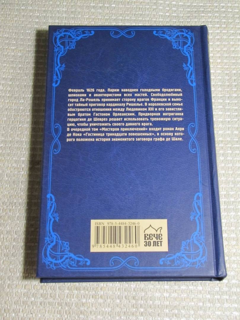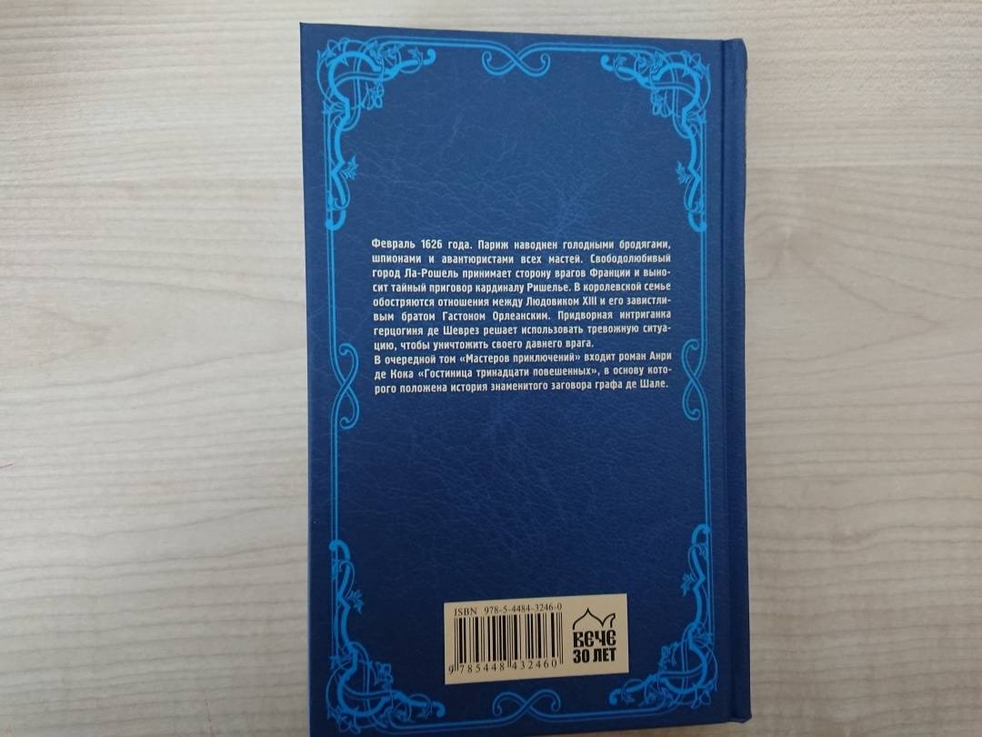 ОписаниеФевраль 1626 года. Париж наводнен голодными бродягами, шпионами и авантюристами всех мастей. Свободолюбивый город Ла-Рошель принимает сторону врагов Франции и выносит тайный приговор кардиналу Ришелье. В королевской семье обостряются отношения между Людовиком XIII и его завистливым братом Гастоном Орлеанским. Придворная интриганка герцогиня де Шеврез решает использовать тревожную ситуацию, чтобы уничтожить своего давнего врага.В очередной том «Мастеров приключений» входит роман Анри де Кока «Гостиница тринадцати повешенных», в основу которого положена история знаменитого заговора графа де Шале.Февраль 1626 года. Париж наводнен голодными бродягами, шпионами и авантюристами всех мастей. Свободолюбивый город Ла-Рошель принимает сторону врагов Франции и выносит тайный приговор кардиналу Ришелье. В королевской семье обостряются отношения между Людовиком XIII и его завистливым братом Гастоном Орлеанским. Придворная интриганка герцогиня де Шеврез решает использовать тревожную ситуацию, чтобы уничтожить своего давнего врага.В очередной том «Мастеров приключений» входит роман Анри де Кока «Гостиница тринадцати повешенных», в основу которого положена история знаменитого заговора графа де Шале.