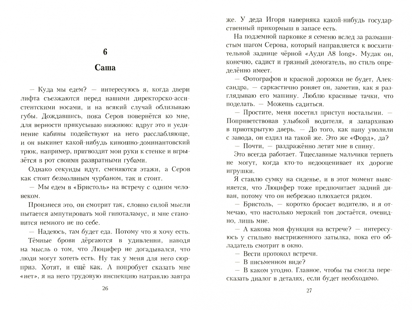 ОписаниеМоя московская подруга Катя - журналист в местной газете, и ей поручили провести расследование на предмет офисных домогательств. Объектом был выбран глава крупного столичного холдинга Кирилл Серов, который по слухам меняет до десяти помощниц в месяц, после того как с лихвой усладит ими свое алчное либидо. По причине внезапной болезни Кати, помочь прижучить холодного и циничного мерзавца вызвалась я.Моя московская подруга Катя - журналист в местной газете, и ей поручили провести расследование на предмет офисных домогательств. Объектом был выбран глава крупного столичного холдинга Кирилл Серов, который по слухам меняет до десяти помощниц в месяц, после того как с лихвой усладит ими свое алчное либидо. По причине внезапной болезни Кати, помочь прижучить холодного и циничного мерзавца вызвалась я.