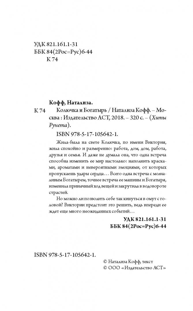 Объем, стр. 320 ISBN 978-5-17-105642-1 Автор Кофф Натализа Серия Хиты Рунета Язык Русский Минимальный возраст 16+ Год издания книги 2018 Тип обложки Твердый переплет Иллюстрации Без иллюстраций Вес, г 308г Размеры 205х130х26 мм - Отзывы