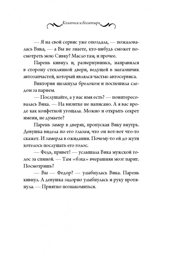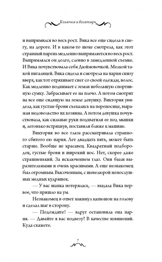 ОписаниеЖила-была на свете Колючка, по имени Виктория, жила спокойно и размеренно: работа, дом, дом, работа, друзья и семья. И даже не думала она, что одна встреча способна изменить ее мир настолько: наполнить красками, ароматами и невероятными эмоциями, от которых пропускаешь удары сердца… Всего одна встреча с молчаливым Богатырем, точнее встреча ее машины и Богатыря, изменила привычный ход вещей и закрутила в водовороте страстей. Но можно ли позволить себе так кинуться в омут с головой? Виктории предстоит это решить, ведь впереди ее ждет еще много неожиданных событий…Жила-была на свете Колючка, по имени Виктория, жила спокойно и размеренно: работа, дом, дом, работа, друзья и семья. И даже не думала она, что одна встреча способна изменить ее мир настолько: наполнить красками, ароматами и невероятными эмоциями, от которых пропускаешь удары сердца… Всего одна встреча с молчаливым Богатырем, точнее встреча ее машины и Богатыря, изменила привычный ход вещей и закрутила в водовороте страстей. Но можно ли позволить себе так кинуться в омут с головой? Виктории предстоит это решить, ведь впереди ее ждет еще много неожиданных событий…