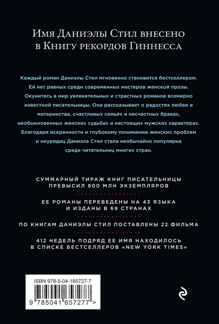 ОписаниеПервая леди зарубежной сентиментальной прозы не перестает радовать миллионы поклонниц своей образцовой прозой! Каждый роман Даниэлы Стил мгновенно становится бестселлером. Ее книги многократно перечитываются, бережно хранятся миллионами женщин, становятся сценариями телесериалов. По книгам Стил поставлен 21 фильм, в том числе "Зоя", "Большей любви не бывает", "Калейдоскоп", "Перемены" и др. "Мои романы отвергает критика - зато их любит читатель. Я - самый настоящий издательский феномен". - Даниэла СтилДаже идеальная жизнь может разрушиться в одно мгновение. В этом трогательном и эмоциональном романе Даниэла Стил знакомит читателей с харизматичными героями, которые пытаются преодолеть трагедию и победить жизненные обстоятельства. Лили Томас - начинающая чемпионка по лыжным гонкам. Она готовится к Олимпийским играм и всем сердцем мечтает завоевать золото. Но у судьбы свои планы, и счастливое будущее Лили рушится в результате трагического несчастного случая.Отец Лили, успешный бизнесмен Билл Томас, в отчаянии. Он возлагал все свои надежды на дочь, но теперь его мечты разбиты вдребезги. Билл обвиняет всех, даже талантливого хирурга Джессику Мэтьюз, которая оперировала Лили в ту ужасную ночь. Но и в жизни Джессики происходит опасный поворот судьбы.Жизни героев переплетаются. Финансовый менеджер Джо терпит неудачу в карьере, психолог Кэрол переживает страшную болезнь, а Тедди мечтает поступить в колледж и стать художником, несмотря на повреждение спинного мозга. Шесть человек принимают вызовы судьбы и отказываются терпеть поражение. И когда Билл строит реабилитационный центр для дочери, он еще не знает, что навсегда изменит жизни героев. "Счастливчики" - это история о том, как важно не сдаваться. Ведь когда Лили снова встает на лыжи, она понимает, что уже выиграла главные игры - игры судьбы. Когда кажется, что все потеряно, помни: битва только начинается.СвернутьПервая леди зарубежной сентиментальной прозы не перестает радовать миллионы поклонниц своей образцовой прозой! Каждый роман Даниэлы Стил мгновенно становится бестселлером. Ее книги многократно перечитываются, бережно хранятся миллионами женщин, становятся сценариями телесериалов. По книгам Стил поставлен 21 фильм, в том числе "Зоя", "Большей любви не бывает", "Калейдоскоп", "Перемены" и др. "Мои романы отвергает критика - зато их любит читатель. Я - самый настоящий издательский феномен". - Даниэла СтилДаже идеальная жизнь может разрушиться в одно мгновение. В этом трогательном и эмоциональном романе Даниэла Стил знакомит читателей с харизматичными героями, которые пытаются преодолеть трагедию и победить жизненные обстоятельства. Лили Томас - начинающая чемпионка по лыжным гонкам. Она готовится к Олимпийским играм и всем сердцем мечтает завоевать золото. Но у судьбы свои планы, и счастливое будущее Лили рушится в результате трагического несчастного случая.Отец Лили, успешный бизнесмен Билл Томас, в отчаянии. Он возлагал все свои надежды на дочь, но теперь его мечты разбиты вдребезги. Билл обвиняет всех, даже талантливого хирурга Джессику Мэтьюз, которая оперировала Лили в ту ужасную ночь. Но и в жизни Джессики происходит опасный поворот судьбы.Жизни героев переплетаются. Финансовый менеджер Джо терпит неудачу в карьере, психолог Кэрол переживает страшную болезнь