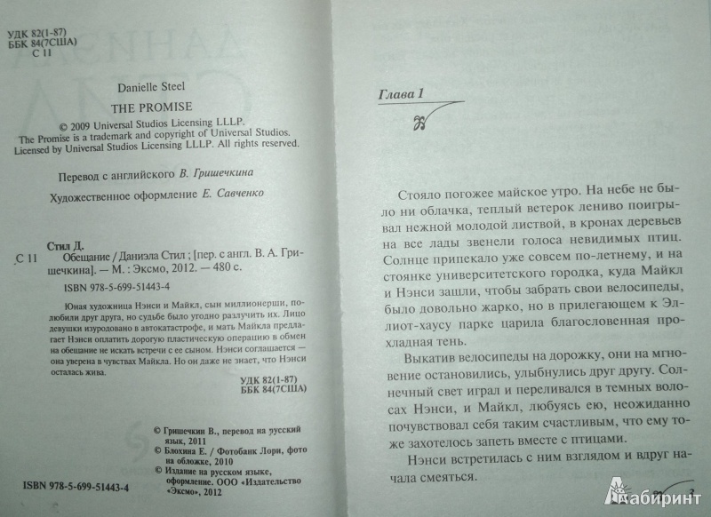 ---Даниэла Стил: ОбещаниеРусская классическая и современная литератураДетектив. Остросюжетная литератураЗарубежная художественная литератураРусская художественная литератураФэнтезиДраматургияПоэзияПриключенияФантастикаЭпос и фольклорКлассическая прозаАфоризмыИсторическая прозаДетективыБасниСентиментальная прозаОтечественный боевикСовременная прозаМолодежная литератураЗарубежная классическая и современная литература