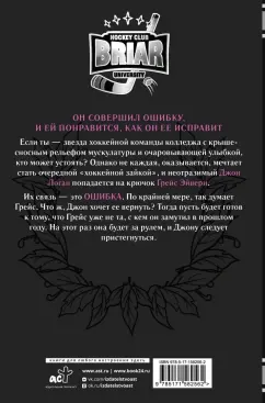 ОписаниеЕсли ты — звезда хоккейной команды колледжа с крышесносным рельефом мускулатуры и очаровывающей улыбкой, кто может устоять? Однако не каждая, оказывается, мечтает стать очередной "хоккейной зайкой", и неотразимый Джон Логан попадается на крючок Грейс Эйвери.Их связь — это ошибка. По крайней мере, так думает Грейс. Что ж, Джон хочет ее вернуть? Тогда пусть будет готов к тому, что Грейс уже не та, с кем он замутил в прошлом году. На этот раз она будет за рулем, и Джону следует пристегнуться.Если ты — звезда хоккейной команды колледжа с крышесносным рельефом мускулатуры и очаровывающей улыбкой, кто может устоять? Однако не каждая, оказывается, мечтает стать очередной "хоккейной зайкой", и неотразимый Джон Логан попадается на крючок Грейс Эйвери.Их связь — это ошибка. По крайней мере, так думает Грейс. Что ж, Джон хочет ее вернуть? Тогда пусть будет готов к тому, что Грейс уже не та, с кем он замутил в прошлом году. На этот раз она будет за рулем, и Джону следует пристегнуться.