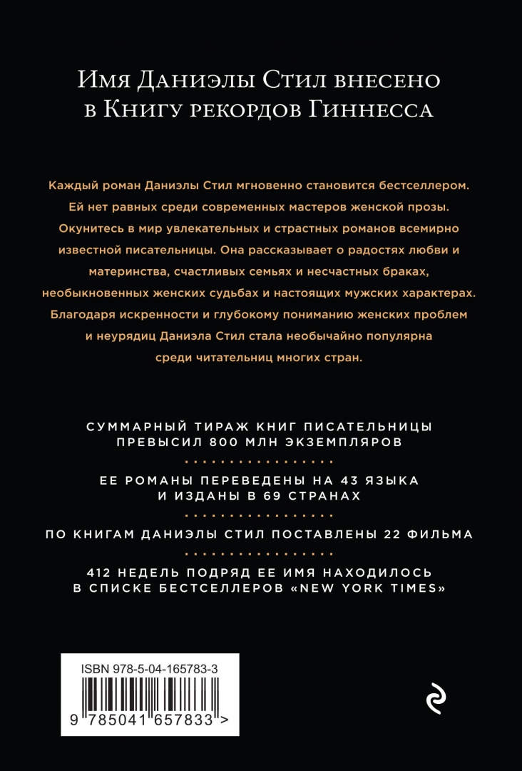 Объем, стр. 512 ISBN 978-5-04-165783-3 Автор Стил Даниэла, Гришечкин Владимир Александрович Переводчик Гришечкин Владимир Александрович Серия Великолепная Даниэла Стил (обложка) Язык Русский Минимальный возраст 16+ Год издания книги 2023 Тип обложки Мягкий переплет Иллюстрации Без иллюстраций Вес, г 260г Размеры 177х121х22 мм - Отзывы