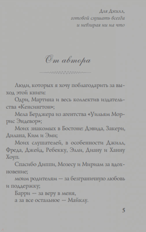 ОписаниеЧто может быть страшнее измены, предательства самого близкого человека, который клялся быть с тобой в горе и радости? Кэти и Роберт вместе восемнадцать лет. Они счастливо живут в Бостоне, но однажды все меняется. У Роберта появляется любовница. Но в жизни не бывает ничего без причины, поэтому Колетт Фридман предоставляет слово всем - мужу, жене, любовнице. У каждого из них своя правда. Каждый хочет быть счастлив. Поразительно тонкий роман, показывающий, что не все в этом мире так однозначно.Что может быть страшнее измены, предательства самого близкого человека, который клялся быть с тобой в горе и радости? Кэти и Роберт вместе восемнадцать лет. Они счастливо живут в Бостоне, но однажды все меняется. У Роберта появляется любовница. Но в жизни не бывает ничего без причины, поэтому Колетт Фридман предоставляет слово всем - мужу, жене, любовнице. У каждого из них своя правда. Каждый хочет быть счастлив. Поразительно тонкий роман, показывающий, что не все в этом мире так однозначно.
