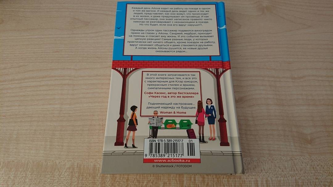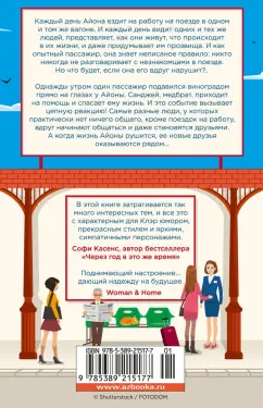ОписаниеКаждый день Айона ездит на работу на поезде в одном и том же вагоне. И каждый день она видит одних и тех же людей, мысленно представляет, как они живут, какие события происходят в их жизни, и даже придумывает им прозвища. Как опытный пассажир, она знает неписаное правило: никто никогда не разговаривает с незнакомцами в поезде. Но что было бы, если бы она это сделала? В какие приключения могли бы вовлечь ее подобные разговоры? Однажды утром один пассажир подавился виноградом прямо на глазах у Айоны. Санджей, медбрат, приходит на помощь и спасает ему жизнь. И это событие вызывает цепную реакцию. Самые разные люди, у которых практически нет ничего общего, кроме поездок на работу, начинают общаться и даже становятся друзьями. А когда жизнь Айоны рушится, ее новые друзья оказываются рядом. "Люди с платформы № 5" - замечательный роман, наполненный радостью, мудростью, теплом и любовью.Каждый день Айона ездит на работу на поезде в одном и том же вагоне. И каждый день она видит одних и тех же людей, мысленно представляет, как они живут, какие события происходят в их жизни, и даже придумывает им прозвища. Как опытный пассажир, она знает неписаное правило: никто никогда не разговаривает с незнакомцами в поезде. Но что было бы, если бы она это сделала? В какие приключения могли бы вовлечь ее подобные разговоры? Однажды утром один пассажир подавился виноградом прямо на глазах у Айоны. Санджей, медбрат, приходит на помощь и спасает ему жизнь. И это событие вызывает цепную реакцию. Самые разные люди, у которых практически нет ничего общего, кроме поездок на работу, начинают общаться и даже становятся друзьями. А когда жизнь Айоны рушится, ее новые друзья оказываются рядом. "Люди с платформы № 5" - замечательный роман, наполненный радостью, мудростью, теплом и любовью.