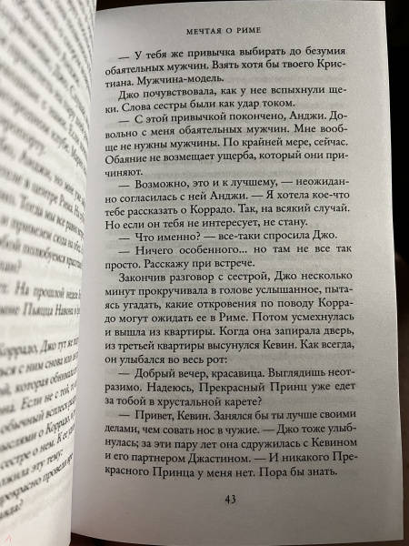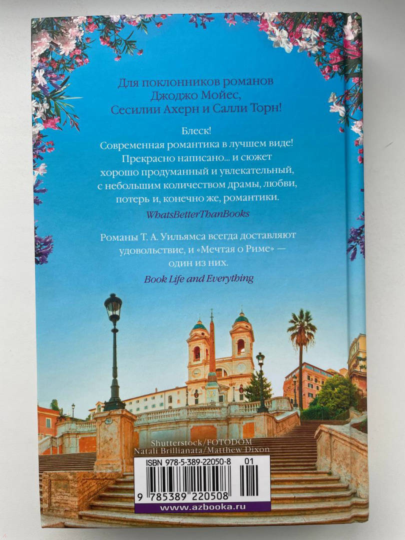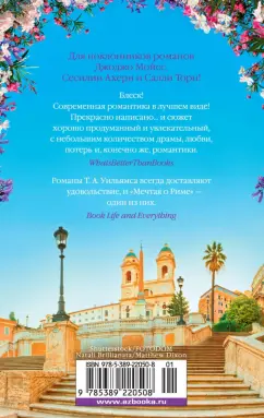 ОписаниеАнгличанка Джо впервые приезжает в Рим на помолвку сестры, где и знакомится с Коррадо, старшим братом жениха. Джо, совсем недавно пережившая болезненный разрыв, разочаровалась в любви, а Коррадо вообще не верит в романтические отношения - зачем затевать пустую любовную интрижку? Лучше остаться просто друзьями. Они с удовольствием проводят время вместе. Коррадо с гордостью показывает Джо старинные площади Вечного города, величественную Испанскую лестницу, древний Колизей... Вернувшись домой, Джо, очарованная итальянскими красотами и обаятельным итальянцем, мечтает о новой поездке в Рим и о встрече с Коррадо, а тот не может забыть красавицу-англичанку. Не в силах противиться нахлынувшим чувствам, он приглашает Джо провести с ним отпуск на яхте... Готова ли Джо дать Коррадо шанс завоевать ее сердце? Сможет ли Рим восстановить ее веру в мужчин? Есть ли будущее у их отношений и сможет ли любовь победить все сомнения? "Мечтая о Риме" - трогательный и в то же время радостный, внушающий надежду роман. Впервые на русском языке!СвернутьАнгличанка Джо впервые приезжает в Рим на помолвку сестры, где и знакомится с Коррадо, старшим братом жениха. Джо, совсем недавно пережившая болезненный разрыв, разочаровалась в любви, а Коррадо вообще не верит в романтические отношения - зачем затевать пустую любовную интрижку? Лучше остаться просто друзьями. Они с удовольствием проводят время вместе. Коррадо с гордостью показывает Джо старинные площади Вечного города, величественную Испанскую лестницу, древний Колизей... Вернувшись домой, Джо, очарованная итальянскими красотами и обаятельным итальянцем, мечтает о новой поездке в Рим и о встрече с Коррадо, а тот не может забыть красавицу-англичанку. Не в силах противиться нахлынувшим чувствам, он приглашает Джо провести с ним отпуск на яхте... Готова ли Джо дать Коррадо шанс завоевать ее сердце? Сможет ли Рим восстановить ее веру в мужчин? Есть ли будущее у их отношений и сможет ли любовь победить все сомнения? "Мечтая о Риме" - трогательный и в то же время радостный, внушающий надежду роман. Впервые на русском языке!СвернутьСвернуть
