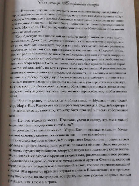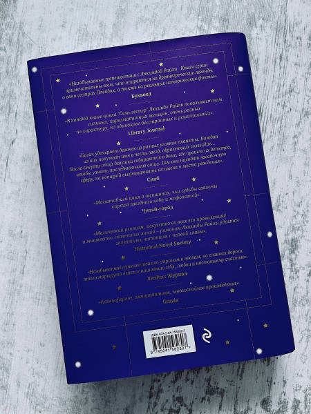 ОписаниеСедьмая книга знаменитого цикла "Семь сестер".Это история последней, "потерянной", сестры Деплеси. Загадка, которая так долго оставалась без ответа!Благодаря завещанию приемного отца Па Солта каждая из шести сестер Деплеси смогла отправиться в уникальное путешествие на земли предков и узнать тайну своего рождения. Но один вопрос по-прежнему остается без ответа. Кем является их потерянная седьмая сестра, которую так и не удочерил Па Солт? Где ее искать? У сестер Деплеси есть лишь одна подсказка - кольцо с семью изумрудами. Из Новой Зеландии в Канаду, Францию и Ирландию - храбрые женщины семьи Деплеси вновь отправляются в путь. Перед ними откроется удивительная история любви и самопожертвования, начало которой было положено почти век назад. Добро пожаловать в красочный подзвездный мир сестер Деплеси.Седьмая книга знаменитого цикла "Семь сестер".Это история последней, "потерянной", сестры Деплеси. Загадка, которая так долго оставалась без ответа!Благодаря завещанию приемного отца Па Солта каждая из шести сестер Деплеси смогла отправиться в уникальное путешествие на земли предков и узнать тайну своего рождения. Но один вопрос по-прежнему остается без ответа. Кем является их потерянная седьмая сестра, которую так и не удочерил Па Солт? Где ее искать? У сестер Деплеси есть лишь одна подсказка - кольцо с семью изумрудами. Из Новой Зеландии в Канаду, Францию и Ирландию - храбрые женщины семьи Деплеси вновь отправляются в путь. Перед ними откроется удивительная история любви и самопожертвования, начало которой было положено почти век назад. Добро пожаловать в красочный подзвездный мир сестер Деплеси.