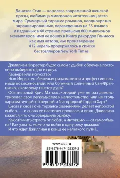 ОписаниеДжиллиан Форрестер будто самой судьбой обречена постоянно выбирать одно из двух.Карьера или искусство? Нью-Йорк, с его бешеным ритмом жизни и профессиональными возможностями, или богемный солнечный Сан-Франциско, к которому тянется душа? Обаятельный Крис Мэтьюс, который уже не раз демонстрировал свое легкомыслие и непостоянство, или не столь харизматичный, но верный и благородный Гордон Харт? Снова и снова она, терзаясь сомнениями, делает непростой выбор, - и снова ее настигает прошлое, и опять Джиллиан кажется, что она совершила ошибку.Как отличить страсть от любви, а интуицию - от самообмана? Как узнать, можно ли войти в одну реку дважды? И что ждет Джиллиан в конце ее нелегкого пути?.. Ранее книга выходила в русском переводе под названием "Возвращение".Джиллиан Форрестер будто самой судьбой обречена постоянно выбирать одно из двух.Карьера или искусство? Нью-Йорк, с его бешеным ритмом жизни и профессиональными возможностями, или богемный солнечный Сан-Франциско, к которому тянется душа? Обаятельный Крис Мэтьюс, который уже не раз демонстрировал свое легкомыслие и непостоянство, или не столь харизматичный, но верный и благородный Гордон Харт? Снова и снова она, терзаясь сомнениями, делает непростой выбор, - и снова ее настигает прошлое, и опять Джиллиан кажется, что она совершила ошибку.Как отличить страсть от любви, а интуицию - от самообмана? Как узнать, можно ли войти в одну реку дважды? И что ждет Джиллиан в конце ее нелегкого пути?.. Ранее книга выходила в русском переводе под названием "Возвращение".