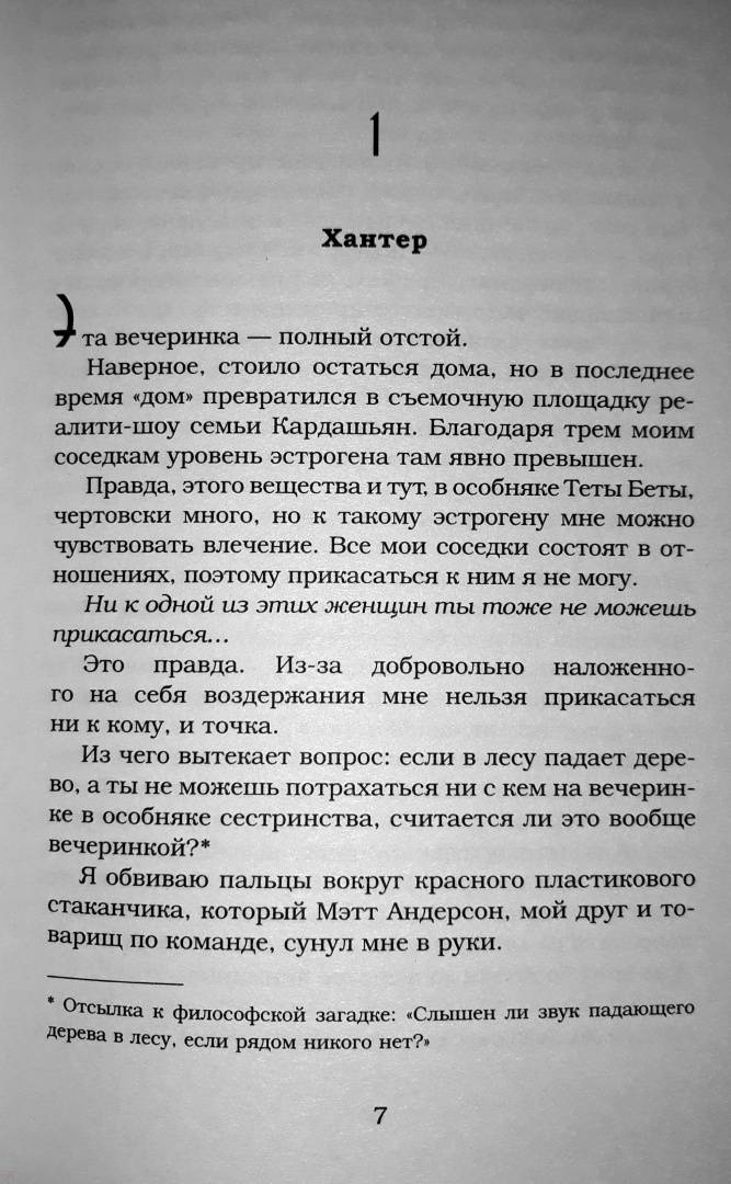 ОписаниеНОВАЯ ЧАСТЬ ХИТОВОГО ЦИКЛА 'BRIAR U' ОТ АВТОРА СУПЕРБЕСТСЕЛЛЕРОВ ПО ВЕРСИИ NEW YORK TIMES!Какой урок я усвоил после того, как в прошлом году мои развлечения стоили моей хоккейной команде целого сезона? Больше никаких провалов. Больше никаких шашней, и точка. Как новому капитану команды мне нужна новая философия: сначала хоккей и учеба, а потом уже девушки. То есть я, Хантер Дэвенпорт, официально принимаю целибат… и неважно, насколько это все усложнит.Но в правилах ничего не сказано о том, что мне нельзя дружить с девушкой. И не буду лгать: моя сокурсница Деми Дэвис - классная девчонка. Ее остроумный рот чертовски горяч, как и все в ней, но тот факт, что у нее есть парень, исключает любой соблазн до нее дотронуться.Вот только проходит три месяца нашей дружбы, и Деми одна и в поисках новых отношений.И она нацелилась на меня.Избегать ее невозможно. Мы вместе работаем над годовым учебным проектом, но я уверен, что смогу ей противостоять. Между нами все равно ничего не выйдет. У нас разное происхождение, разные цели, к тому же ее родители меня терпеть не могут.Мутить с ней - очень плохая идея. Осталось только убедить в этом свое тело… и сердце.СвернутьНОВАЯ ЧАСТЬ ХИТОВОГО ЦИКЛА 'BRIAR U' ОТ АВТОРА СУПЕРБЕСТСЕЛЛЕРОВ ПО ВЕРСИИ NEW YORK TIMES!Какой урок я усвоил после того, как в прошлом году мои развлечения стоили моей хоккейной команде целого сезона? Больше никаких провалов. Больше никаких шашней, и точка. Как новому капитану команды мне нужна новая философия: сначала хоккей и учеба, а потом уже девушки. То есть я, Хантер Дэвенпорт, официально принимаю целибат… и неважно, насколько это все усложнит.Но в правилах ничего не сказано о том, что мне нельзя дружить с девушкой. И не буду лгать: моя сокурсница Деми Дэвис - классная девчонка. Ее остроумный рот чертовски горяч, как и все в ней, но тот факт, что у нее есть парень, исключает любой соблазн до нее дотронуться.Вот только проходит три месяца нашей дружбы, и Деми одна и в поисках новых отношений.И она нацелилась на меня.Избегать ее невозможно. Мы вместе работаем над годовым учебным проектом, но я уверен, что смогу ей противостоять. Между нами все равно ничего не выйдет. У нас разное происхождение, разные цели, к тому же ее родители меня терпеть не могут.Мутить с ней - очень плохая идея. Осталось только убедить в этом свое тело… и сердце.СвернутьСвернуть