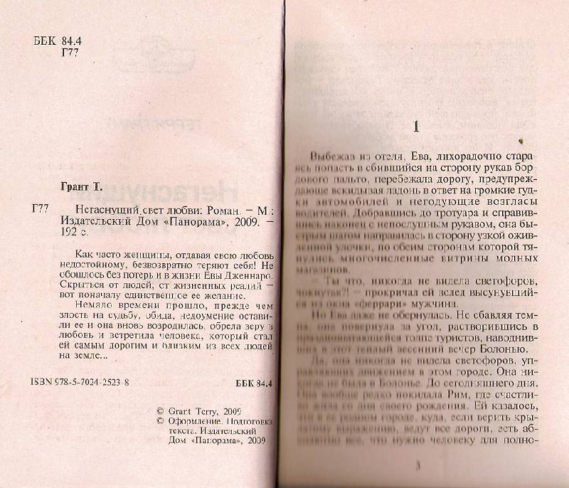 Объем, стр. 192 ISBN 978-5-7024-2523-8 Автор Грант Терри Серия Панорама романов о любви Год издания книги 2009 Тип обложки Мягкий переплет Иллюстрации Без иллюстраций Вес, г 88г Размеры 165х112х10 мм - Отзывы
