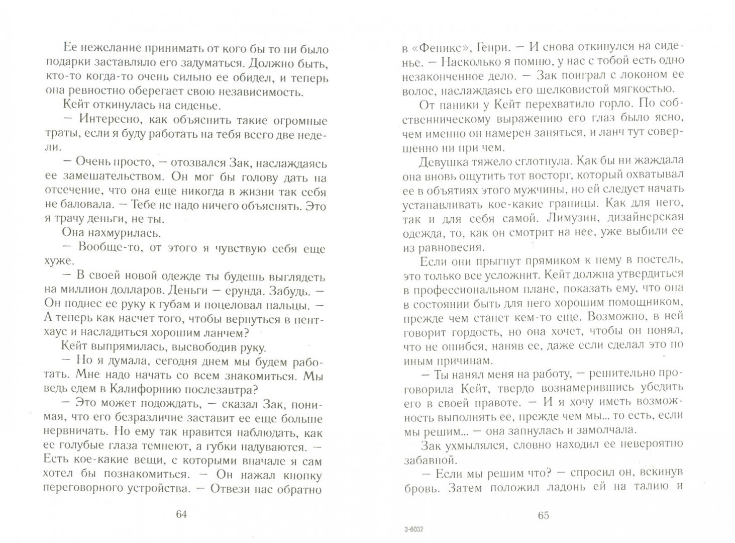 ОписаниеПопав в передрягу, очаровательная Кейти Дентон оказалась в кабинете хозяина гостиничной империи Зака Бодро в одном нижнем белье. Теперь у нее пет ни одежды, ни денег, ни паспорта. Положение безвыходное, но Зак неожиданно делает ей выгодное предложение...Попав в передрягу, очаровательная Кейти Дентон оказалась в кабинете хозяина гостиничной империи Зака Бодро в одном нижнем белье. Теперь у нее пет ни одежды, ни денег, ни паспорта. Положение безвыходное, но Зак неожиданно делает ей выгодное предложение...